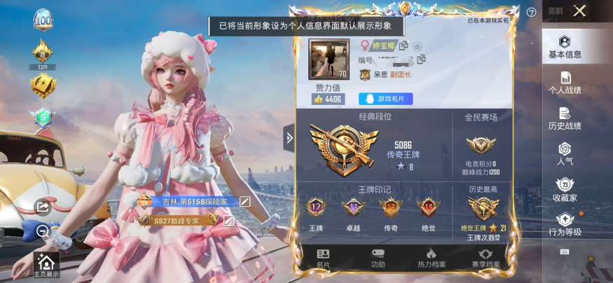 和平精英【安卓QQ】483-可二次【女号 23粉装13特效枪2载具可秒换绑】