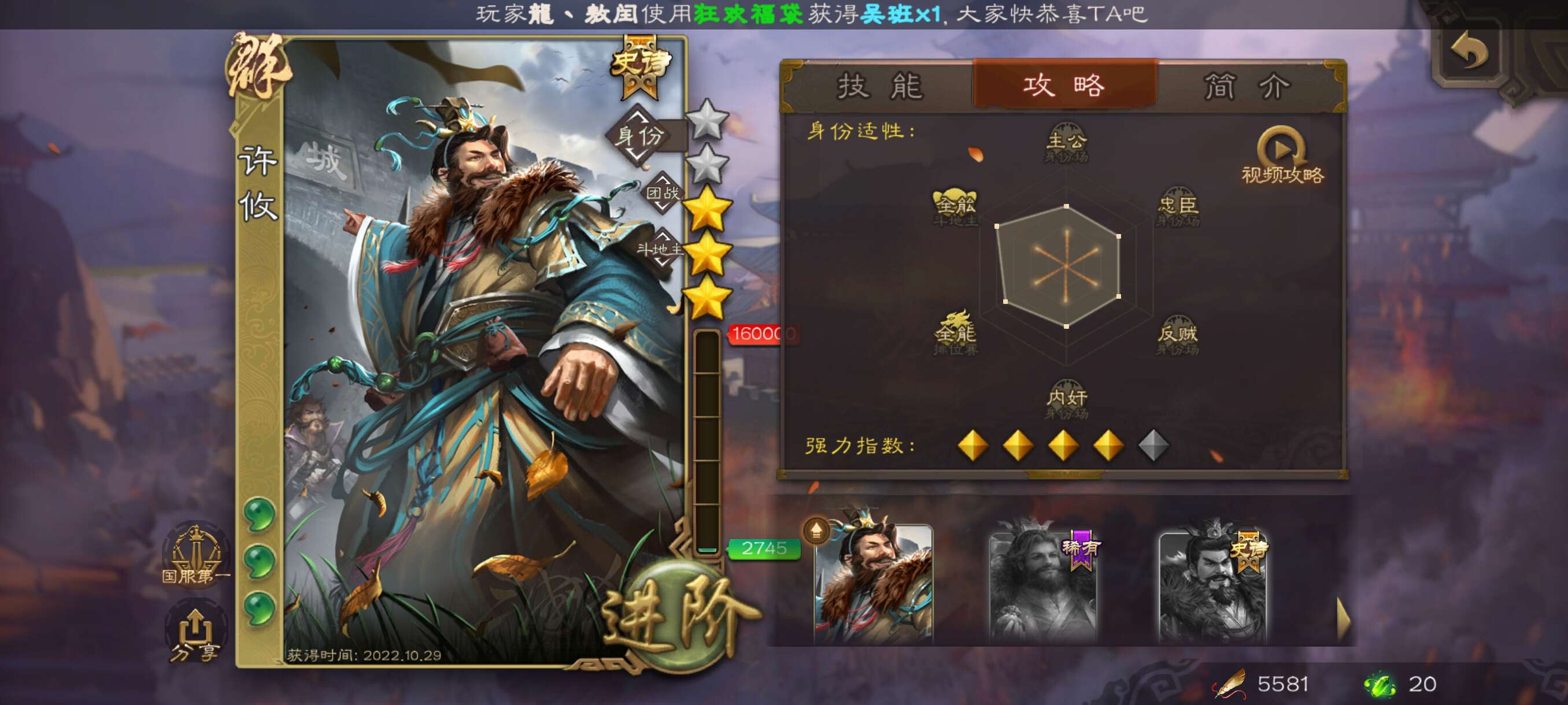 玉龙神孙策+界徐盛+许攸+谋马超+界于禁中军将军!精品强将多,游卡官服字母格式活绑