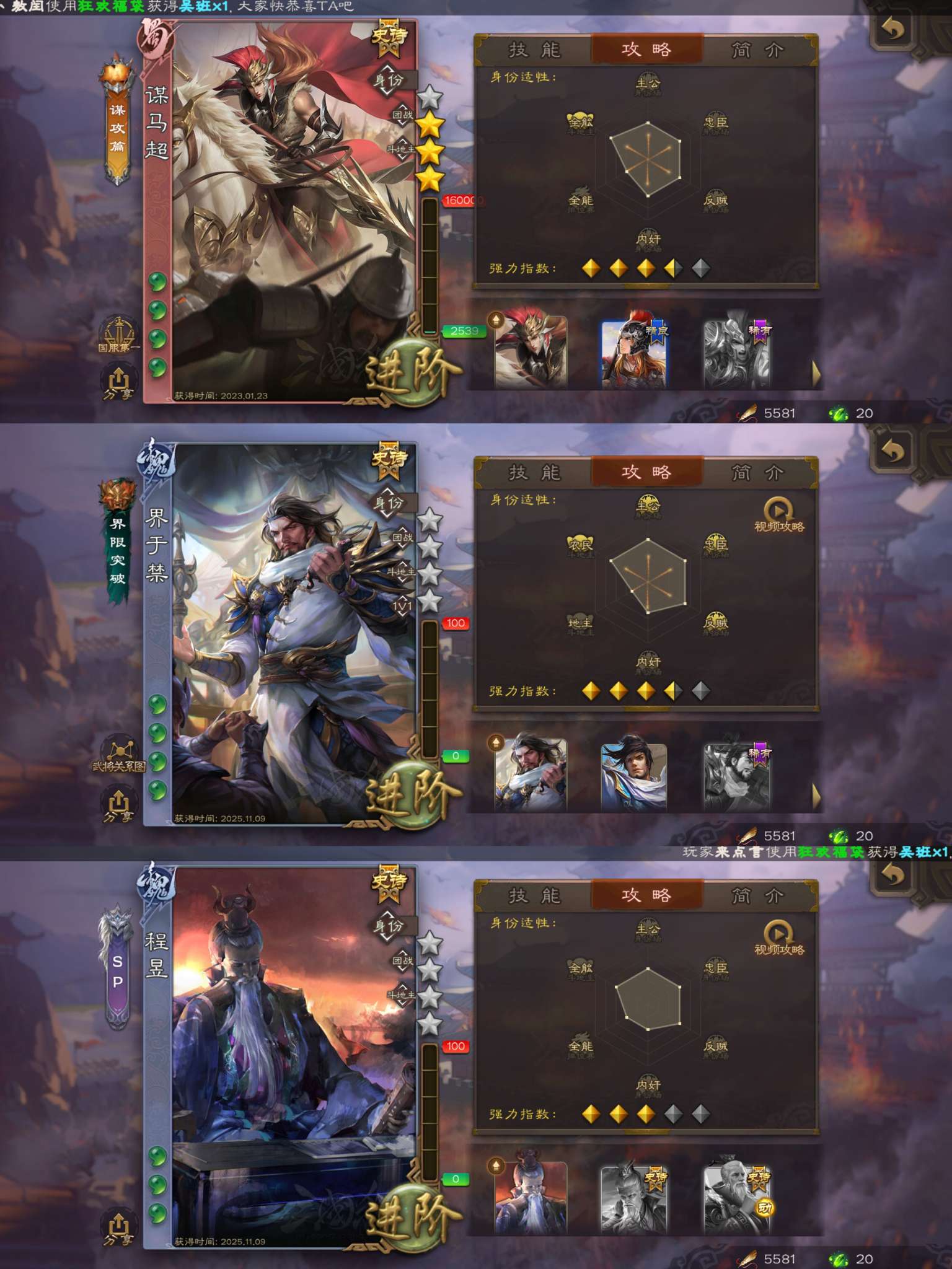 三国杀【安卓官方】玉龙神孙策+界徐盛+许攸+谋马超+界于禁中军将军!精品强将多,游卡官服字母格式活绑