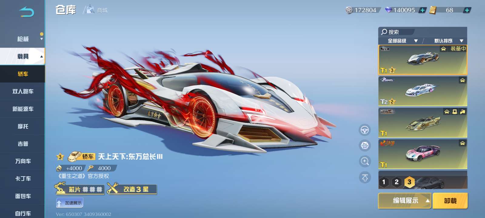 荒野行动pc电脑端手机端重生之道3级特效跑车,进击的巨人T1金车特别版 ,咒术回战满级特效衣服,七级