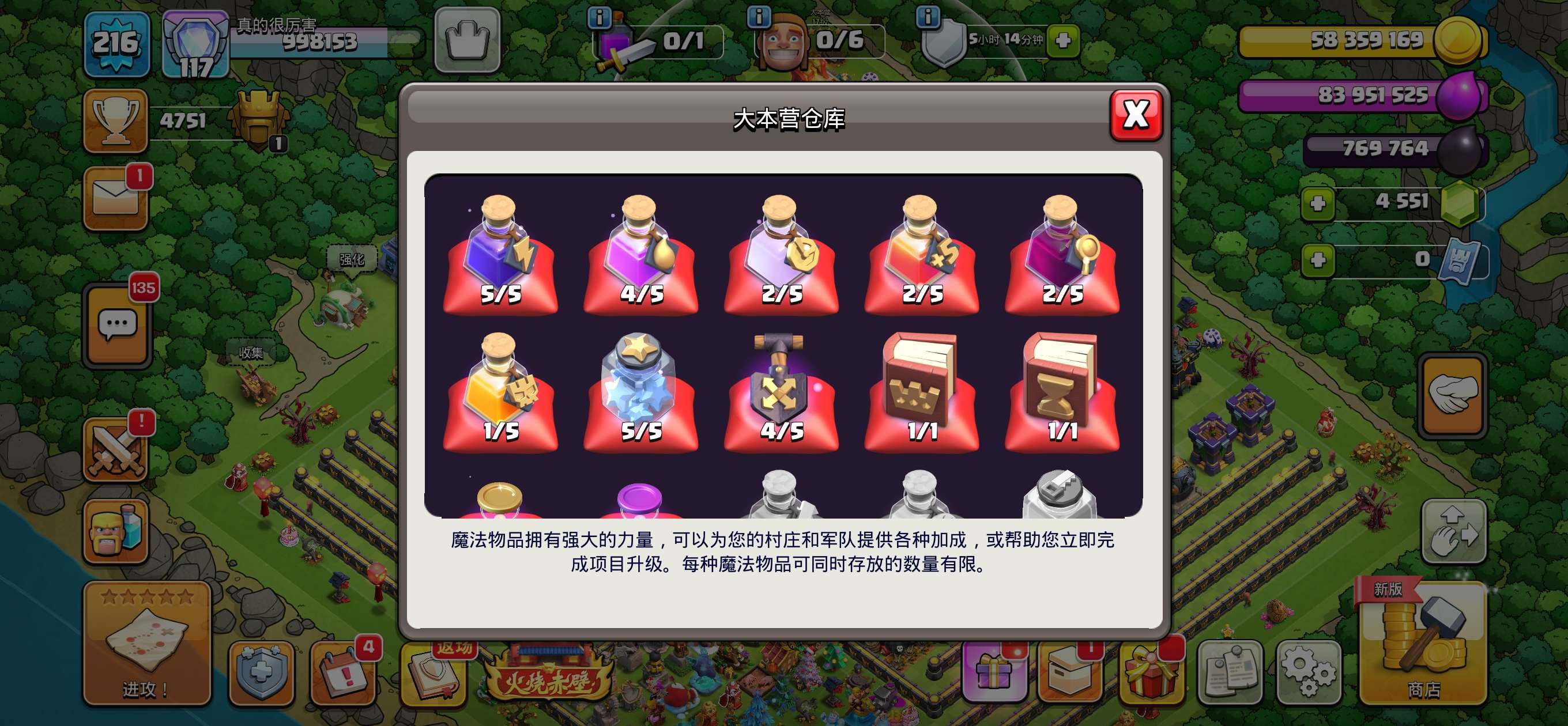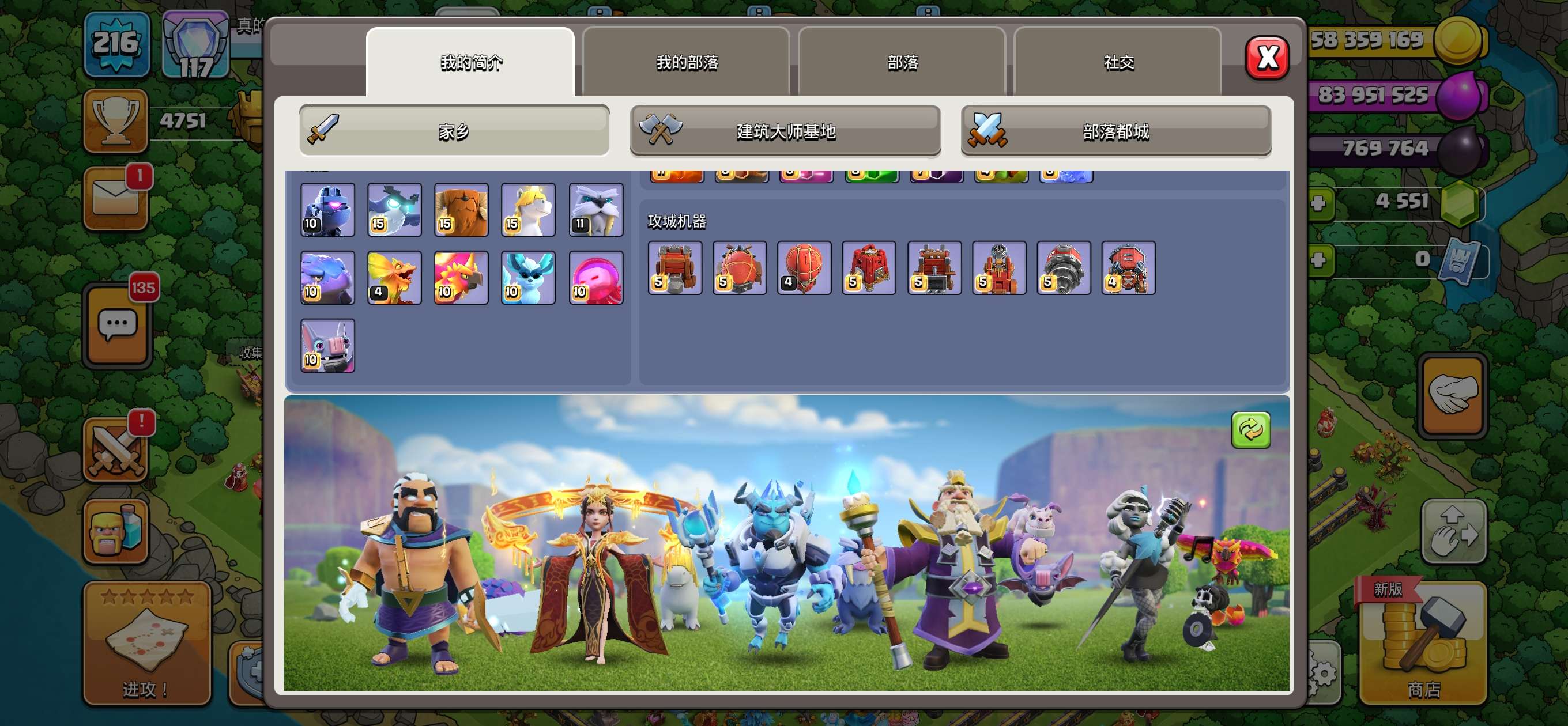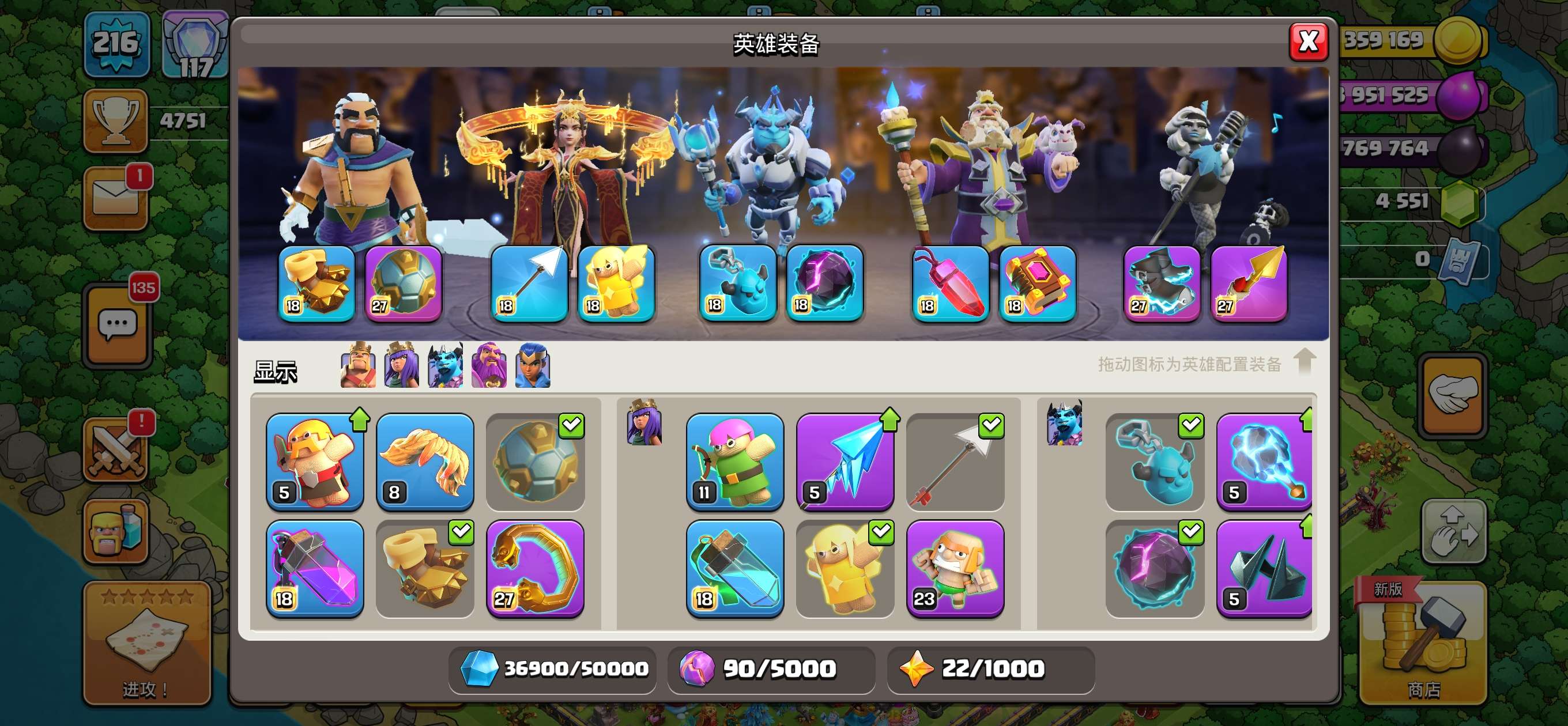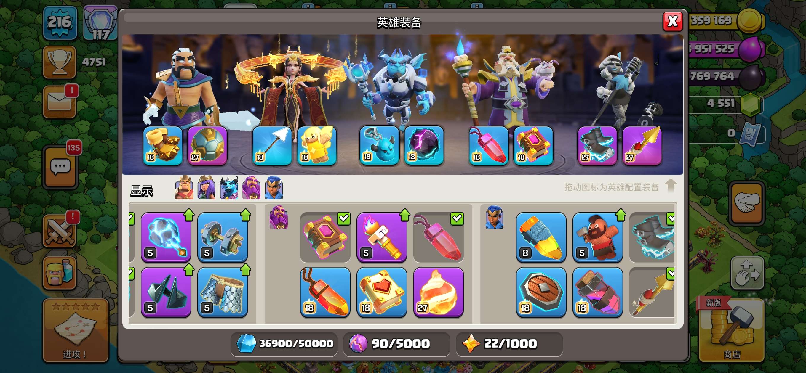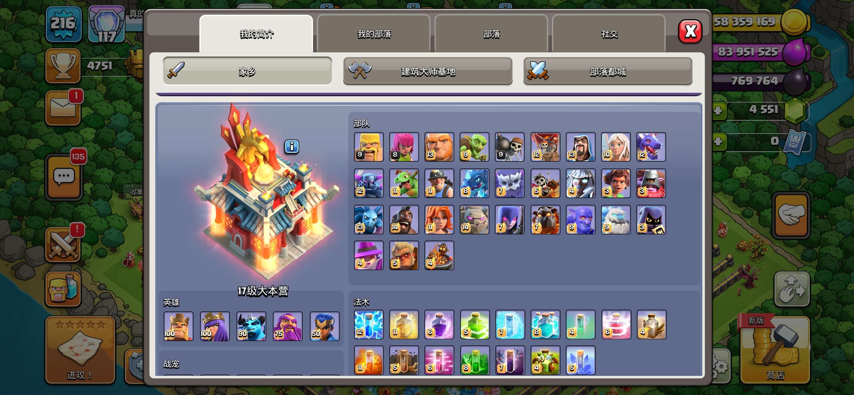 部落冲突【安卓QQ】17本全满,4500宝石,常用装备全满,有一个女王皮肤