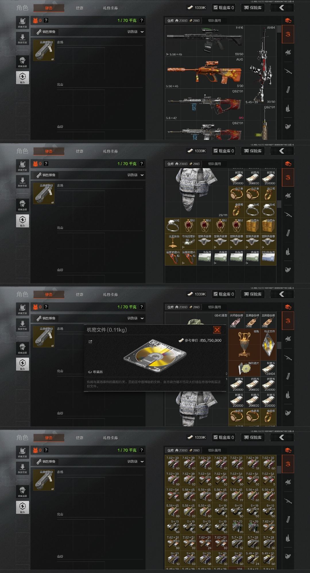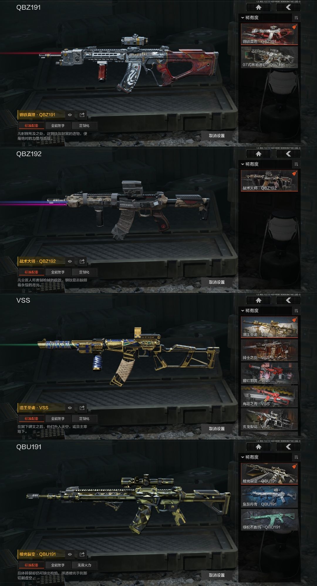 FY5682,总资产19.3m,近战武器:,赢家匕首,瀚星斩铁,寒牙手刺,来战·开山刀,角色装扮(金):,噤声者吉利服,金色枪皮:,钢铁真理·QBZ191,战术大师·QBZ192,旧王圣谕·VSS,棱光裂变·QBU191,蓝色咆哮·H416,告丧夜曲·AUG,旗帜·AEK,大金:,机密文件,安卓Q区实名:可修改