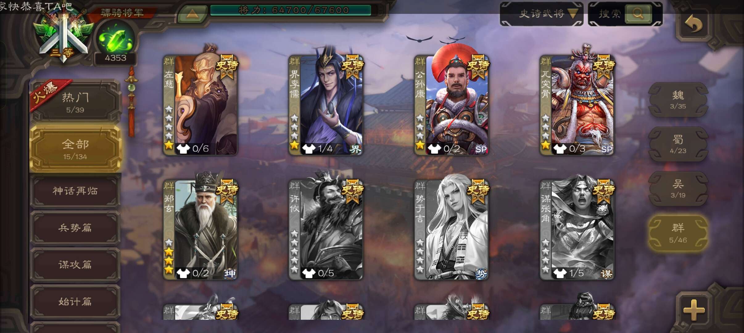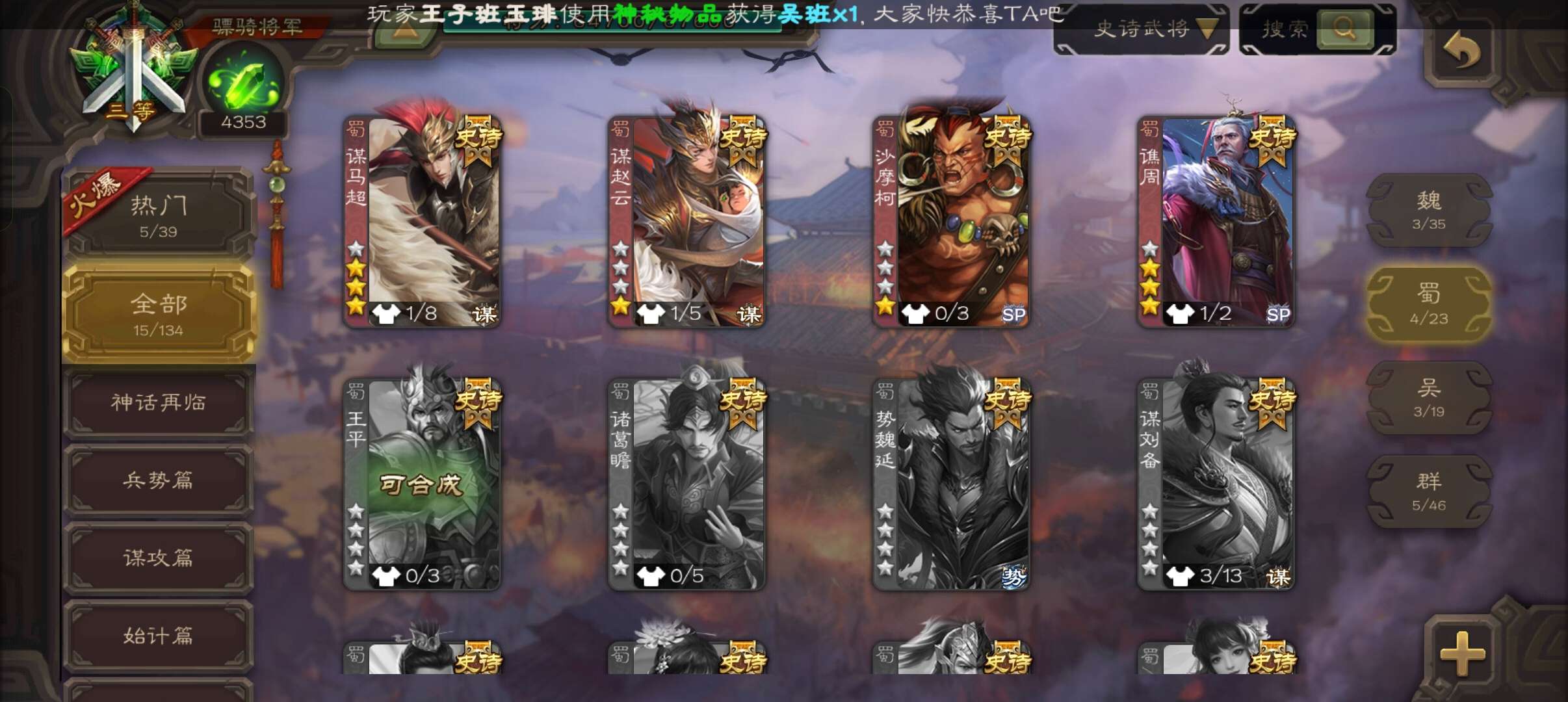 捡漏骠骑势太史慈/大宝/界李儒/郑玄/沙摩柯15史诗无限点将