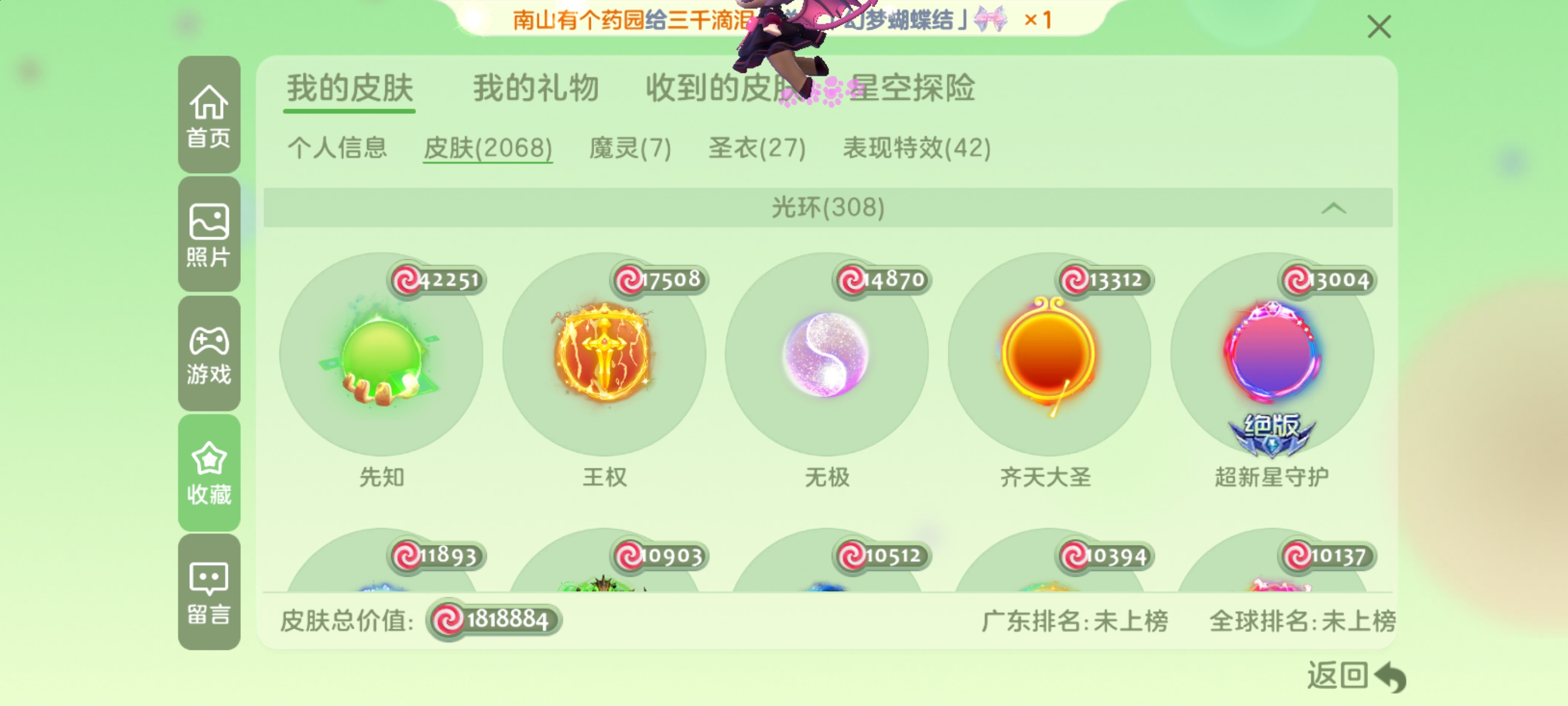 348秀尊贵1,荣耀超神208星,开局30个护盾,账号有礼物,十几天的会员,铁匠铺94级!