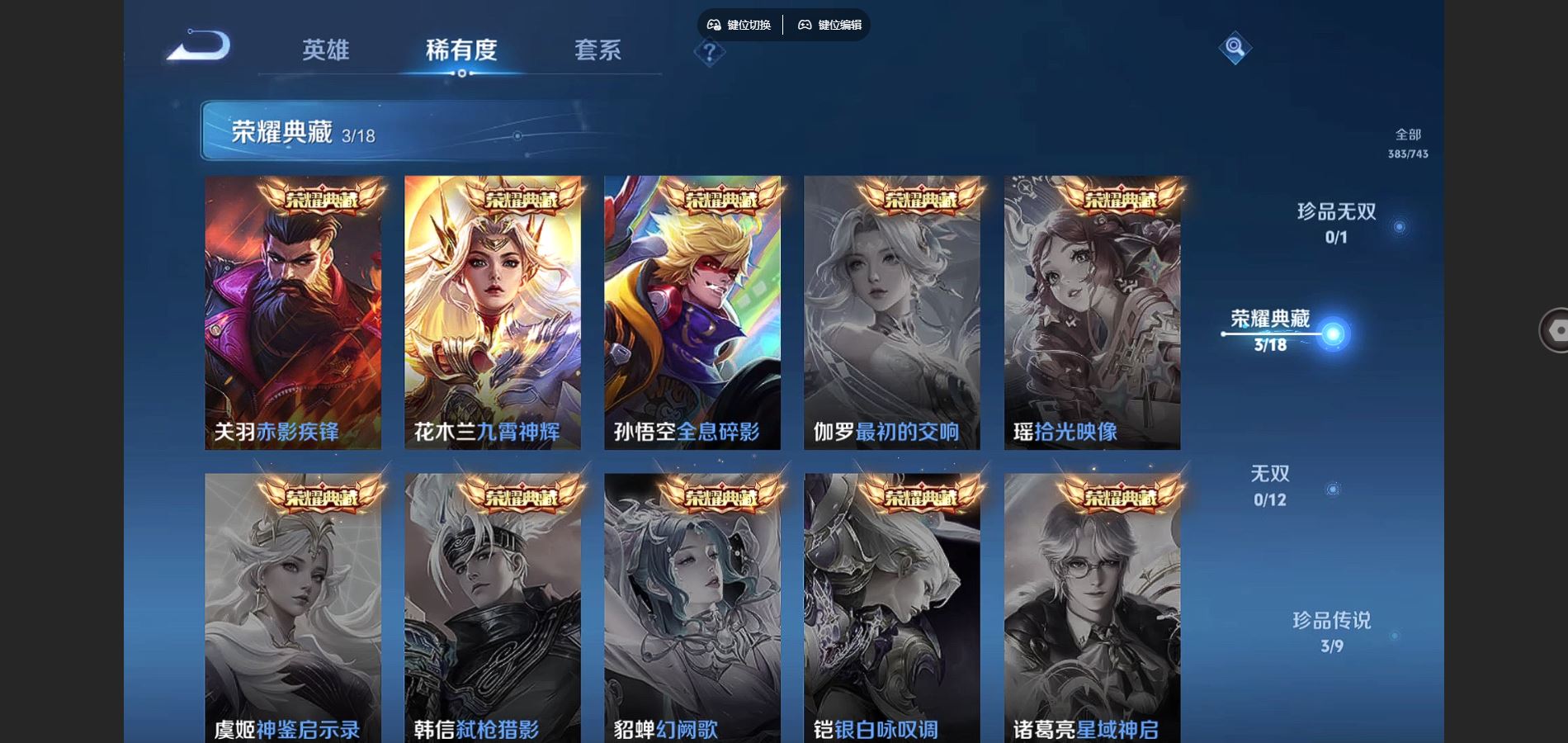 383皮肤3典藏3珍品传说18传说 对抗路30段 【典藏】 全息碎影 九霄神辉 赤影疾锋 【珍品传说