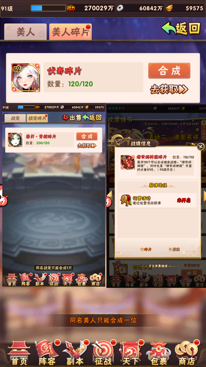 S4739区!3342魂金碎片1830吴金碎片2465幻金碎片开局!双魂金兵符各84碎片!