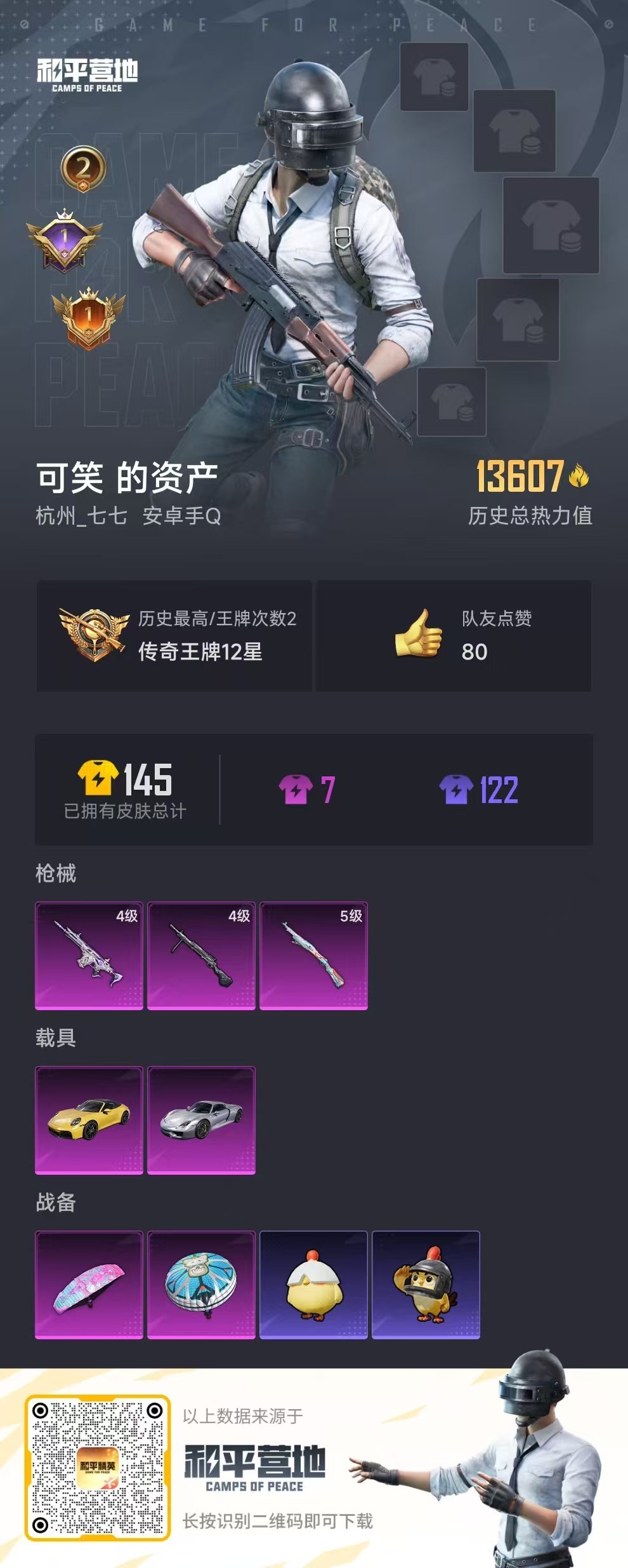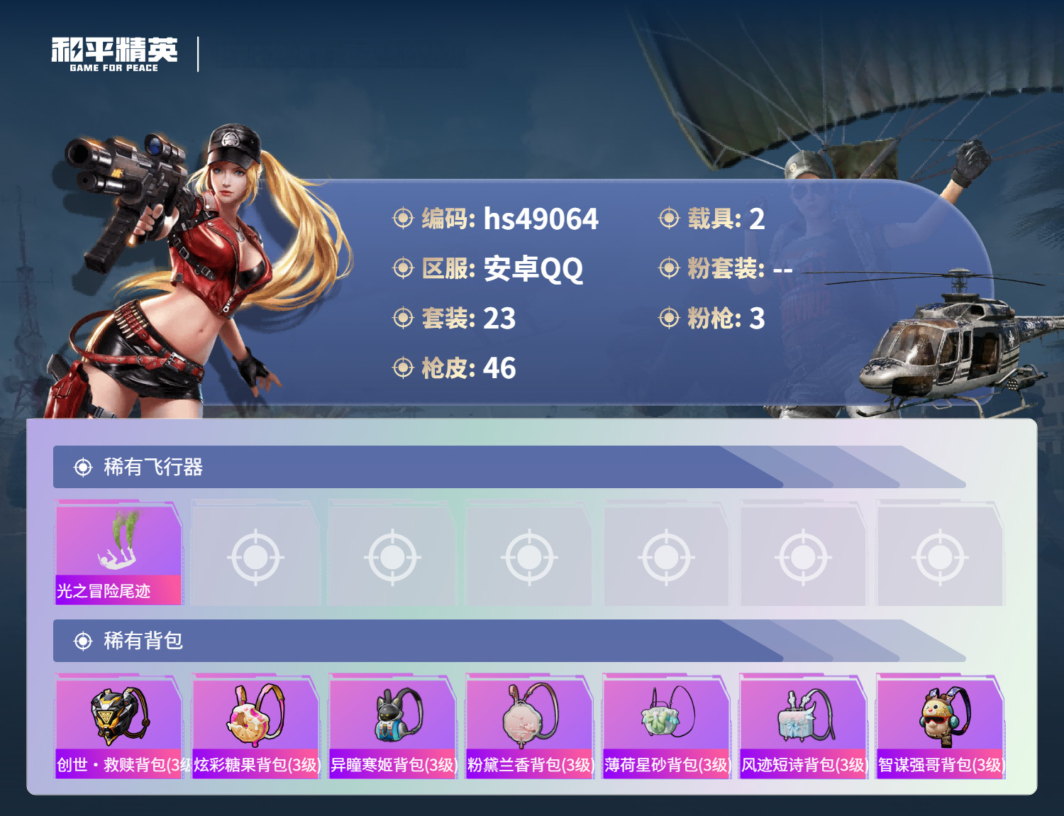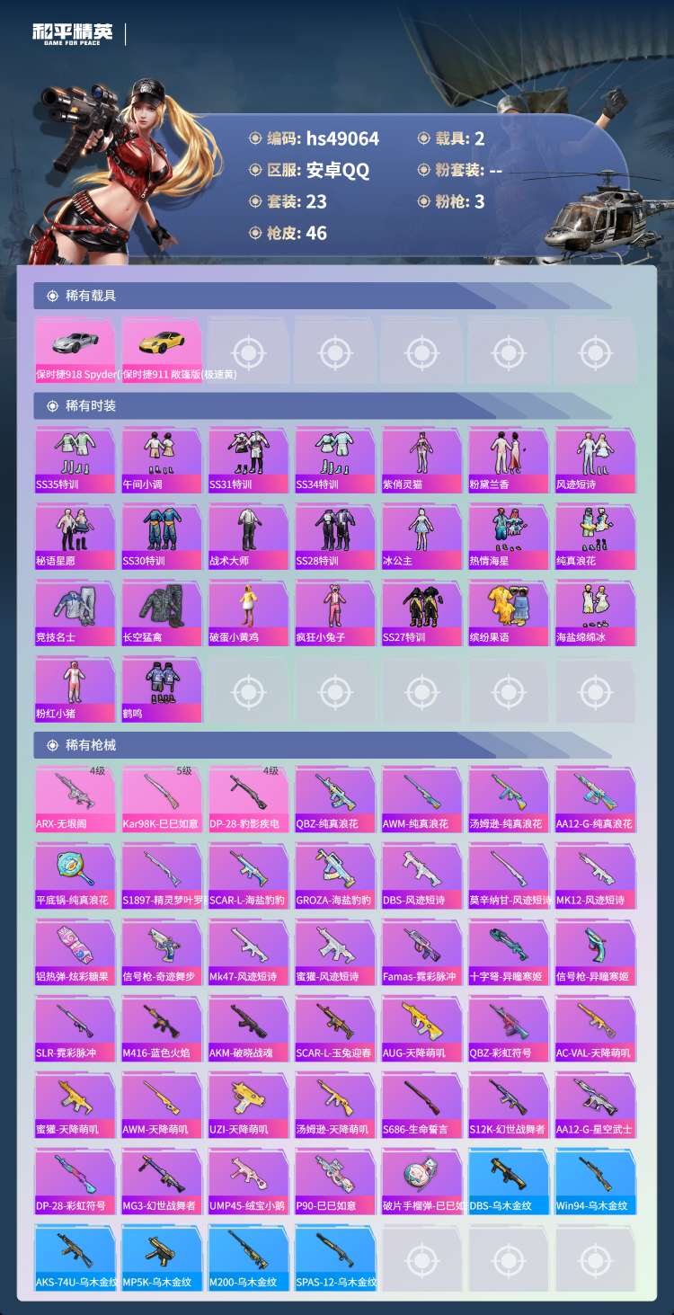 hs49064 安卓手Q-2王牌印记-3特效枪-2载具-13727热力值-23套装-46枪皮-1卓越