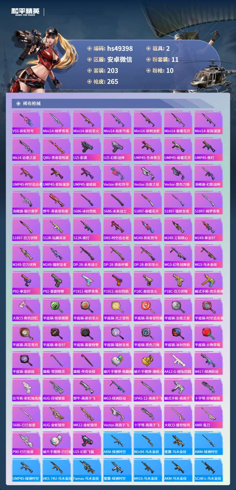 hs49398 安卓微-6王牌印记-11粉装-10特效枪-2载具-83082热力值-203套装-2