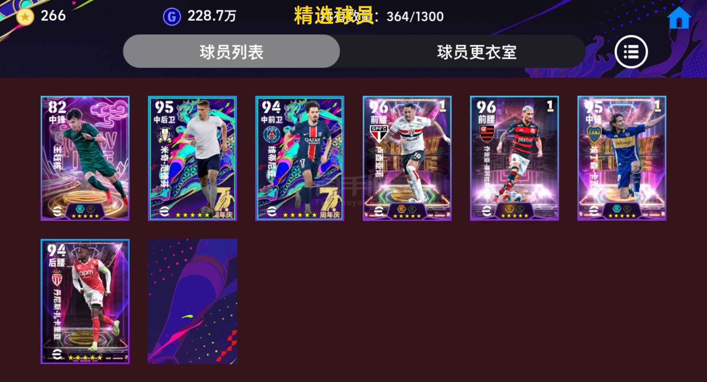 永久卡双增能二闪内马尔黄传维埃拉里杰迪达猎豹埃托奥,看最后一张图,有新抽的高光和增能