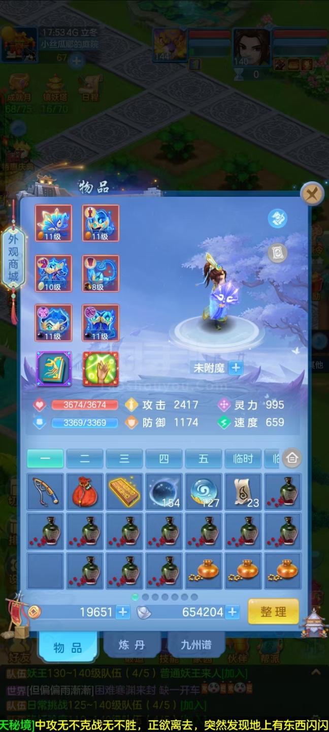 幻唐志:逍遥外传(神武4)【安卓官方】十一段石头,日常足够,房子仓库满格,有65银子,比武积分有1400