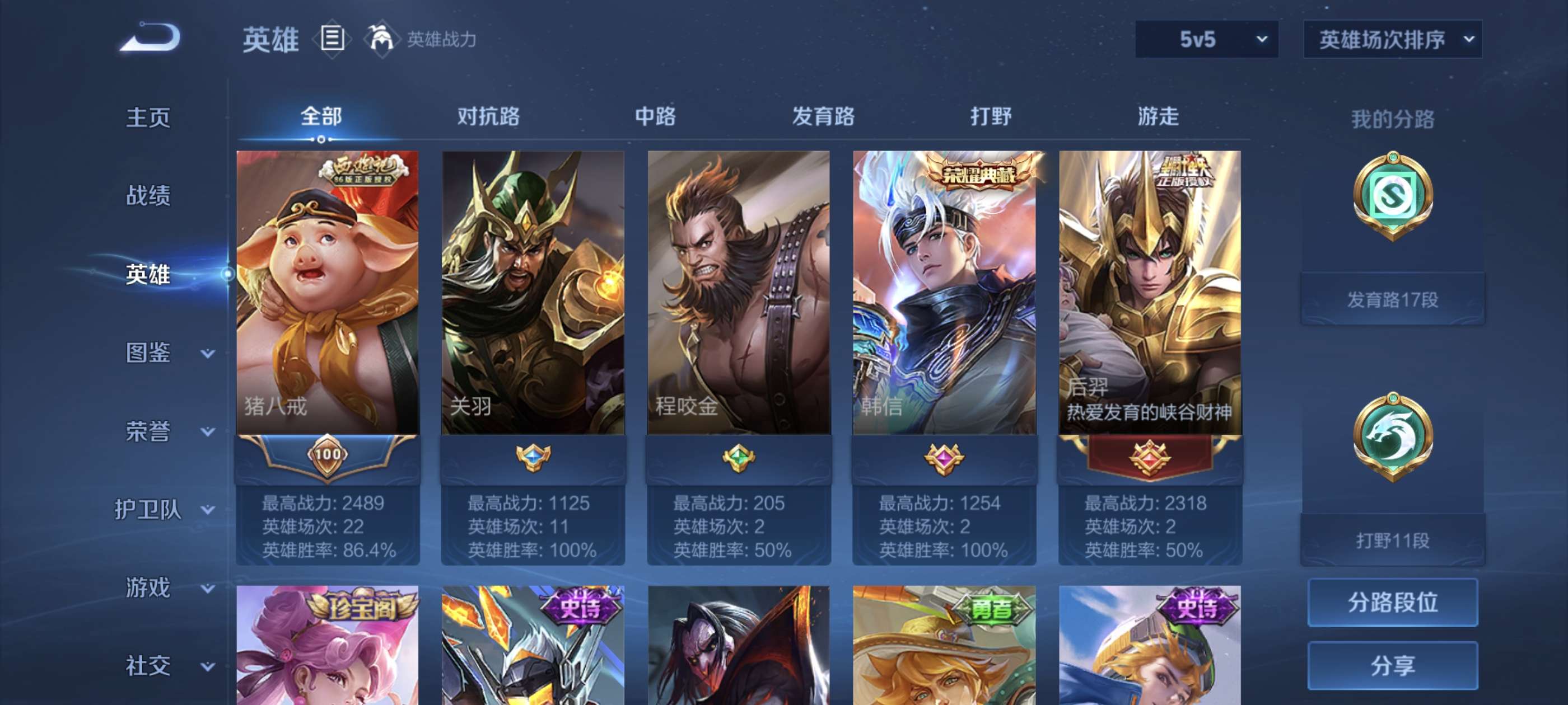 韩信典藏猪悟能多史诗高胜率质量小号