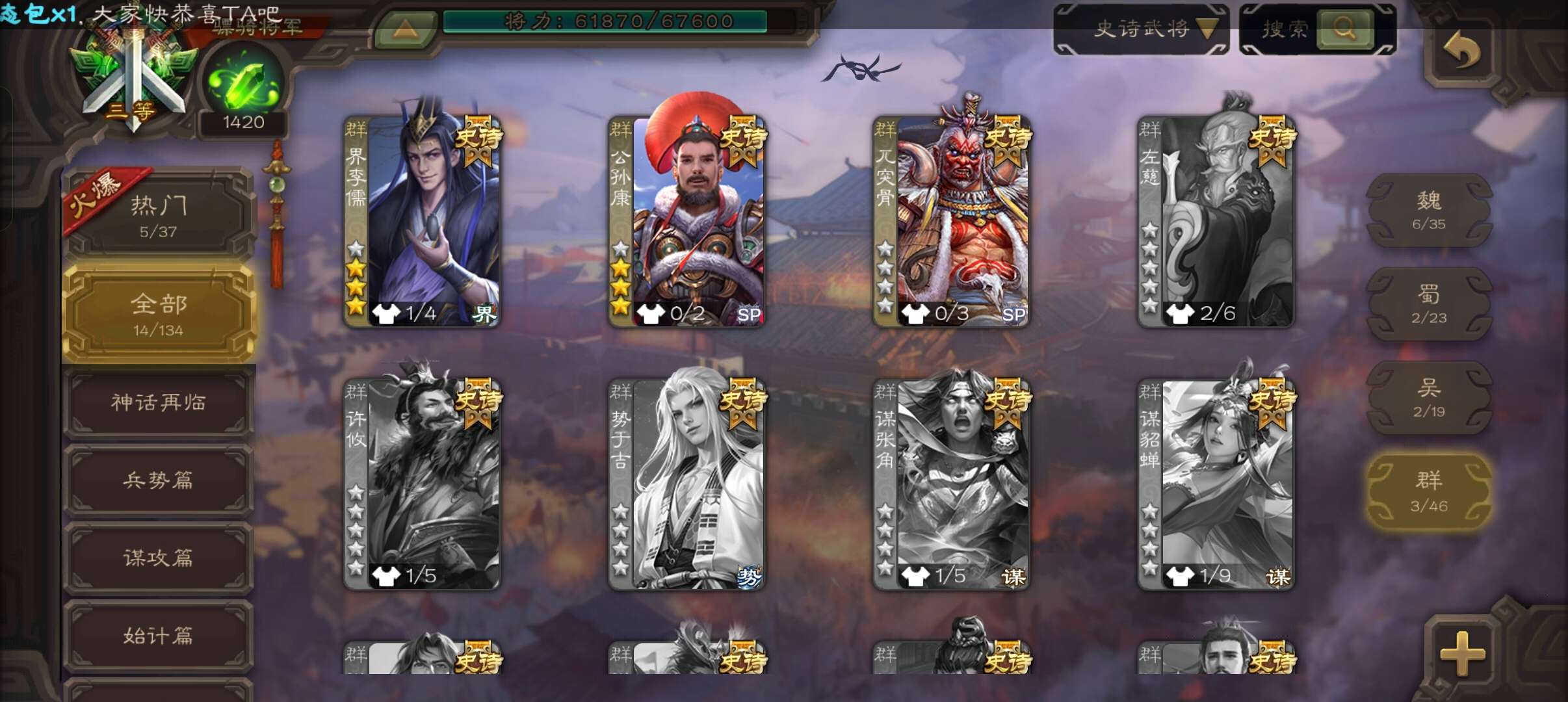 捡漏骠骑大宝/动戏子/界李儒/界钟会/神吕布14史诗无限点将