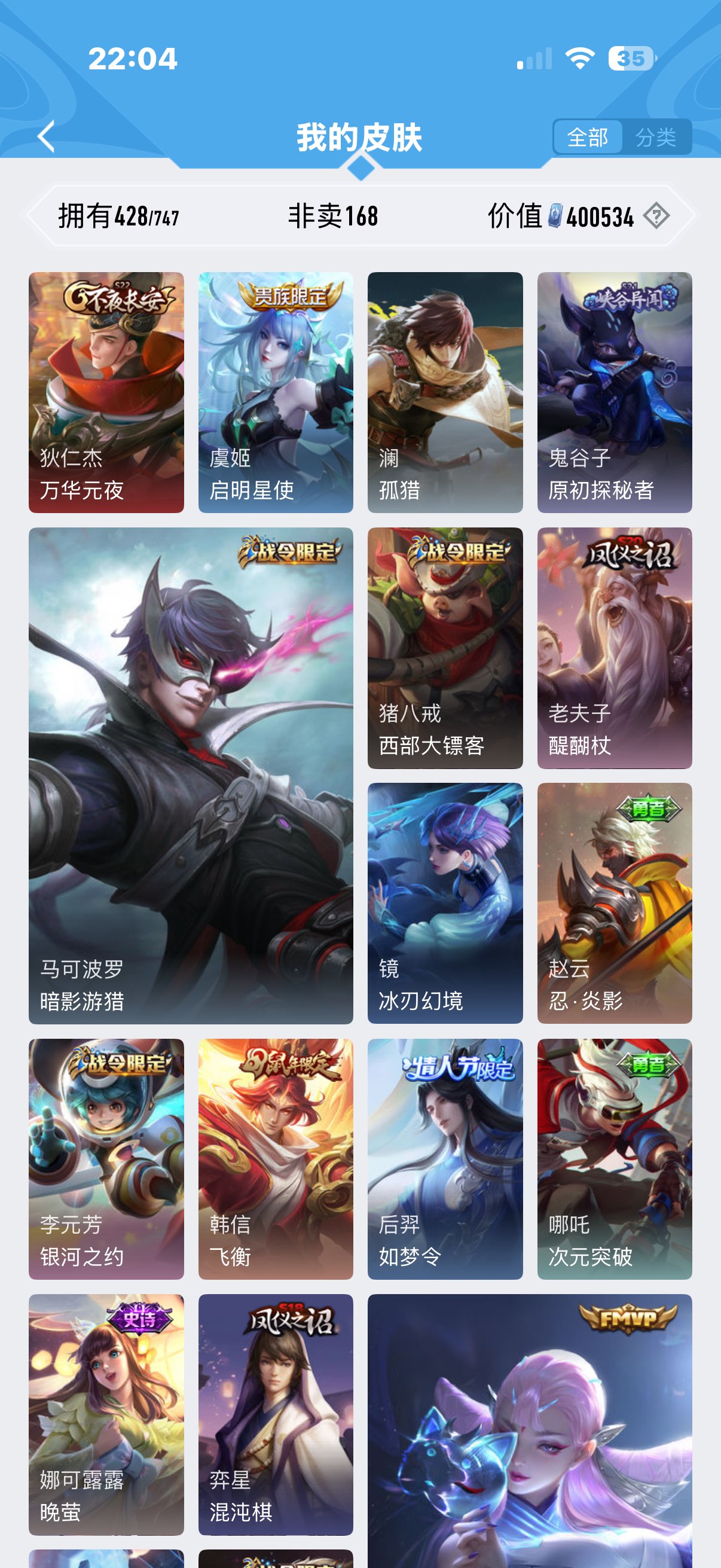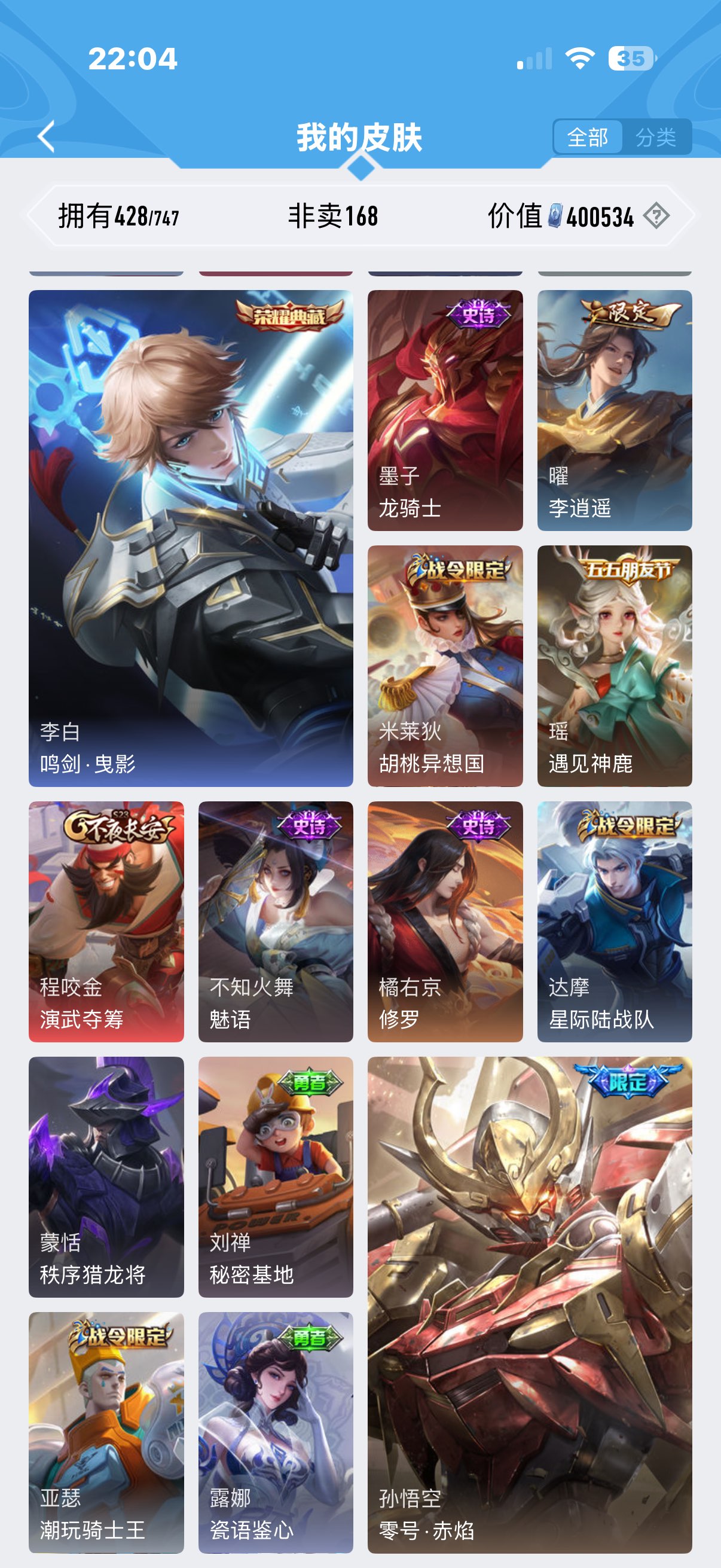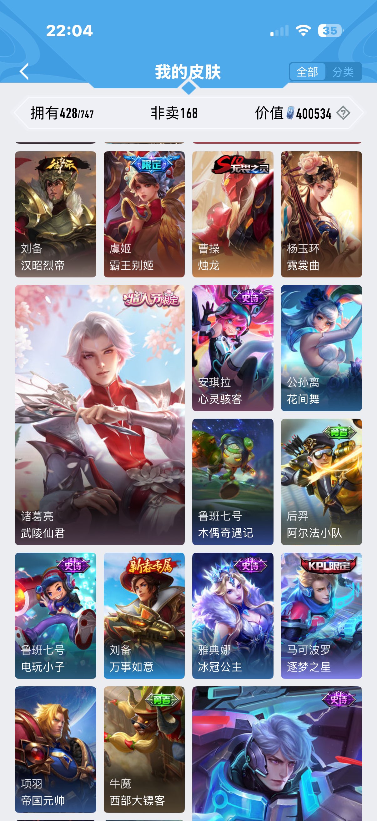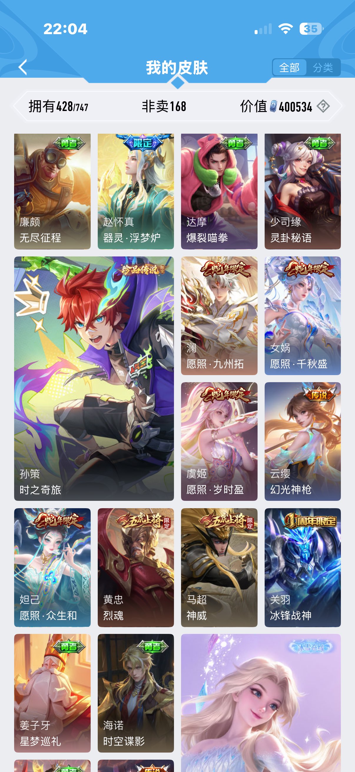 顶级v10带妹号428皮 全英雄皮无双限定 珍品传说 荣耀典藏低价出