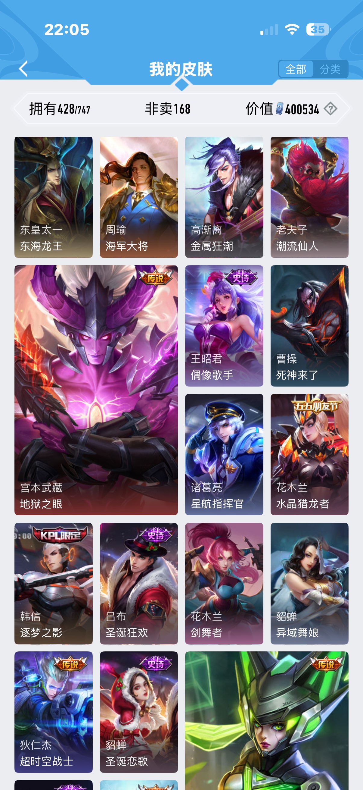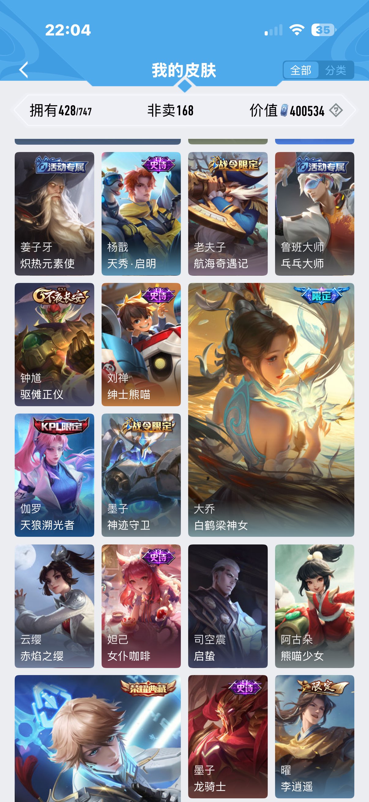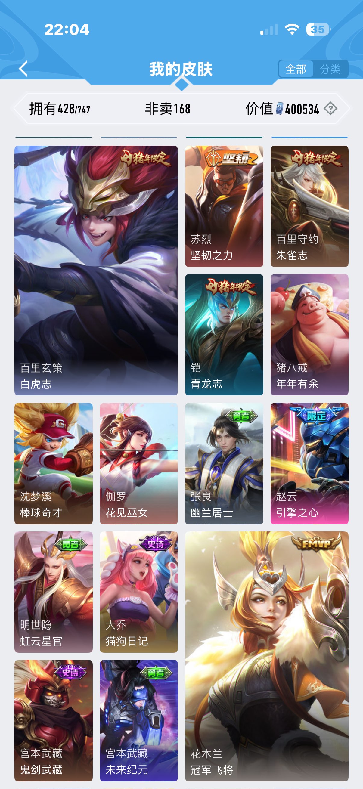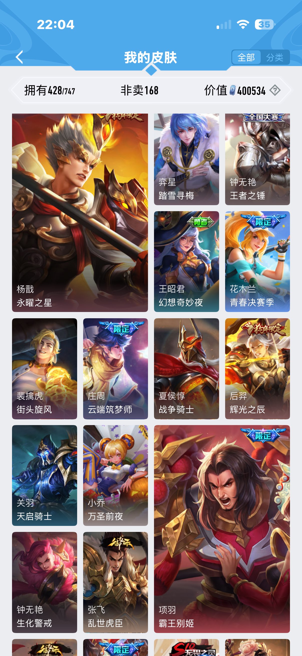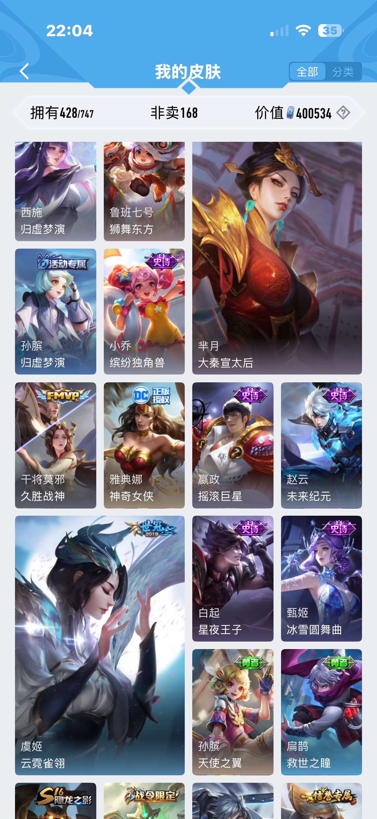 顶级v10带妹号428皮 全英雄皮无双限定 珍品传说 荣耀典藏低价出