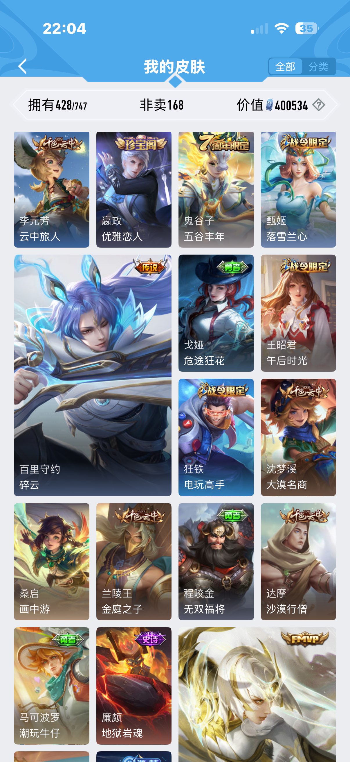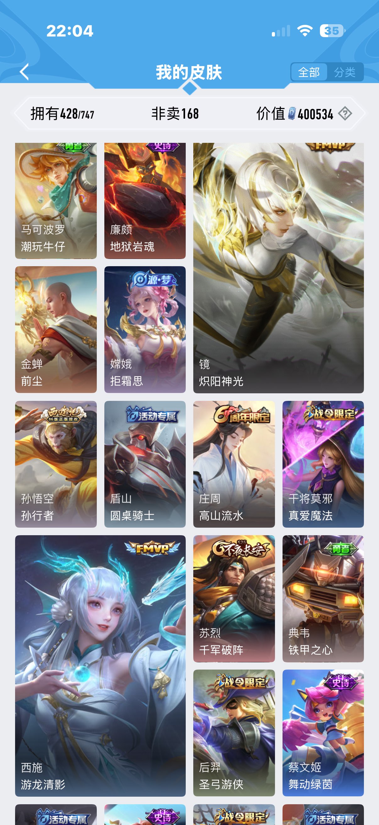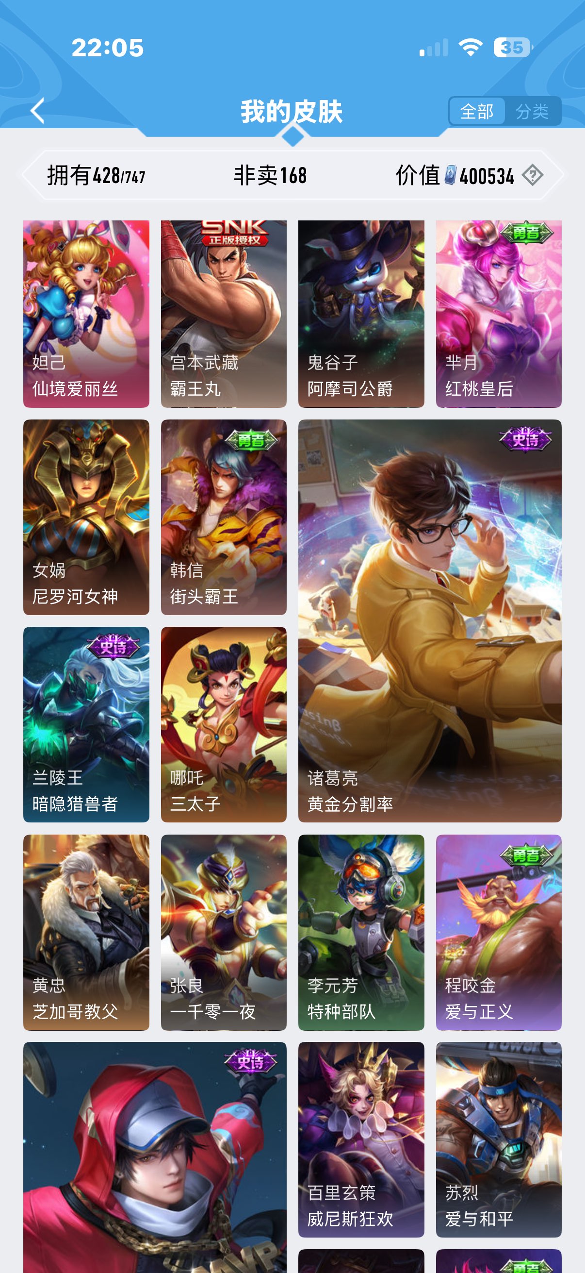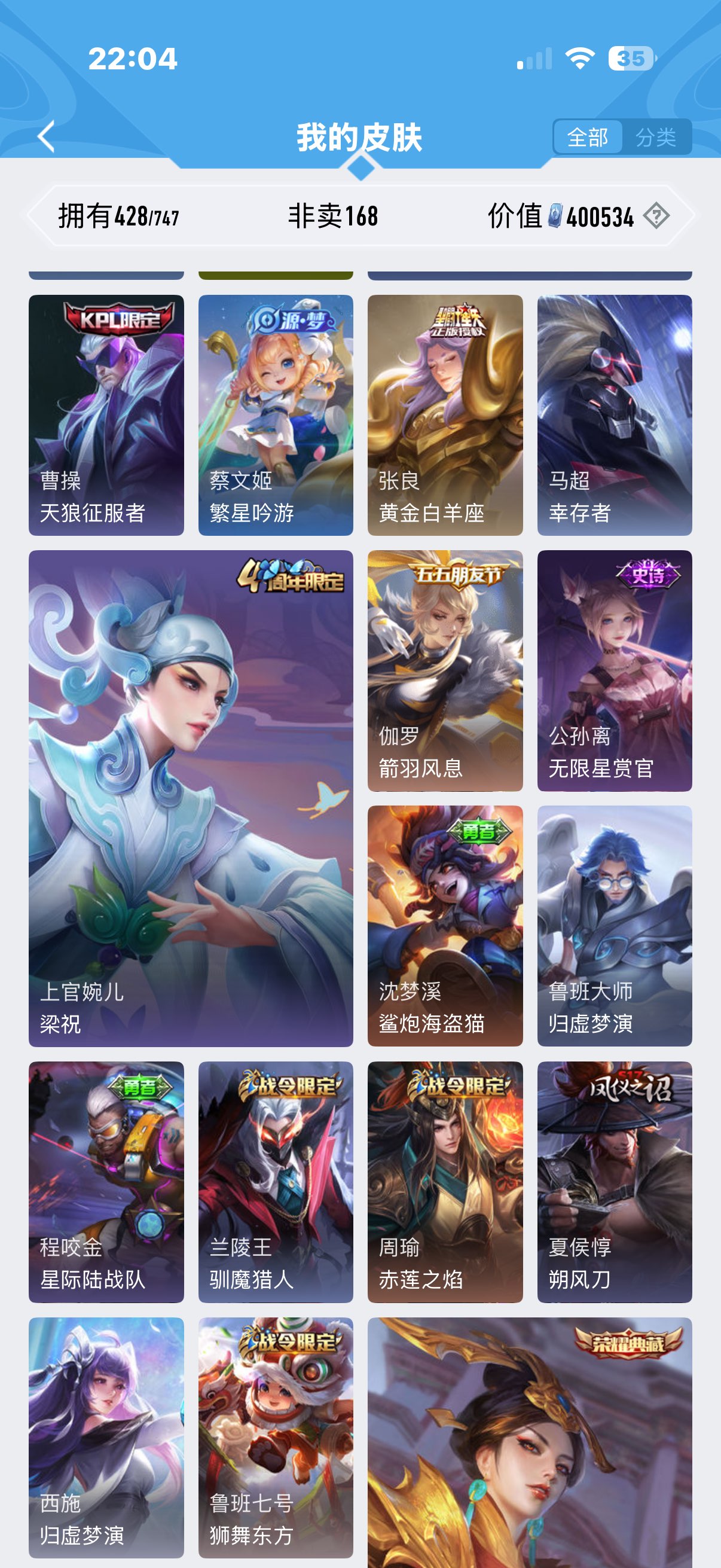 顶级v10带妹号428皮 全英雄皮无双限定 珍品传说 荣耀典藏低价出
