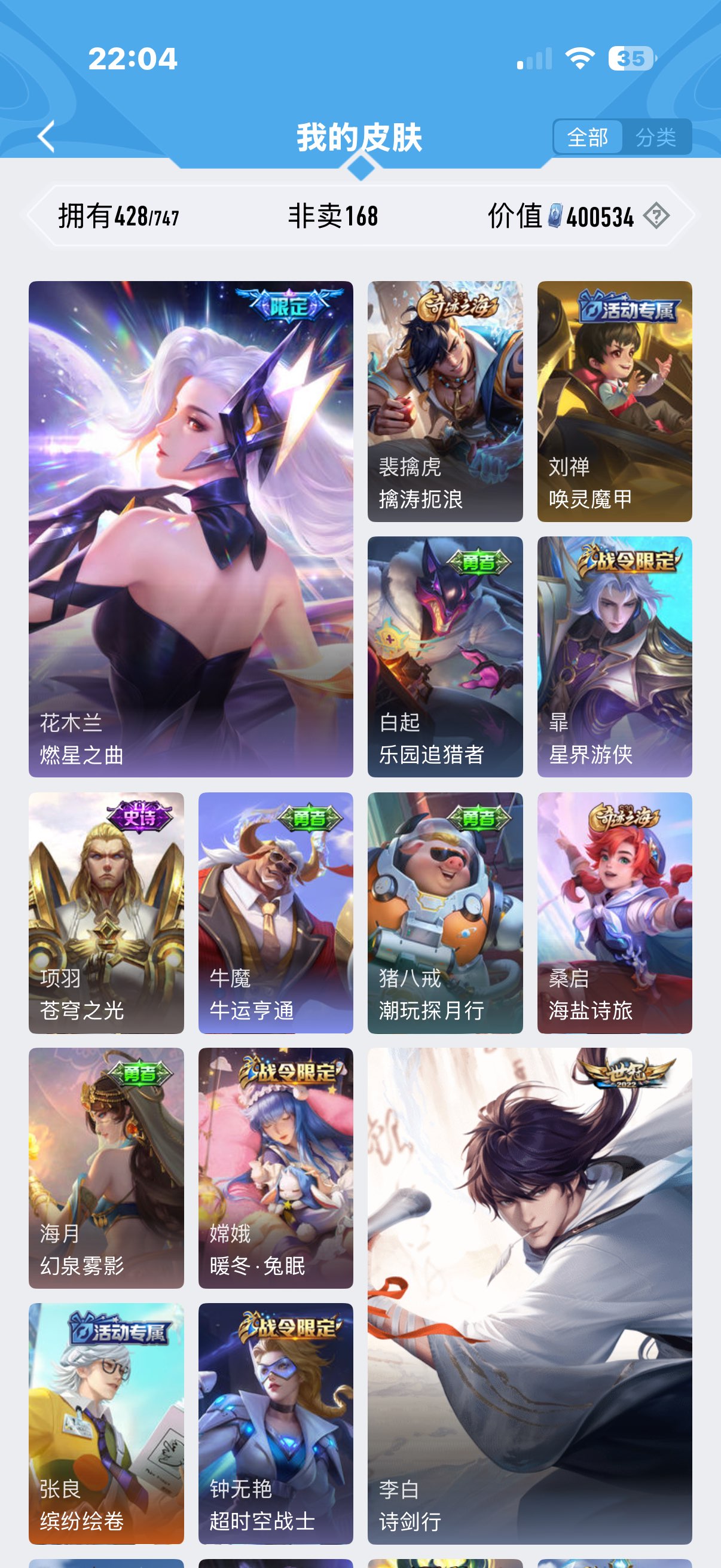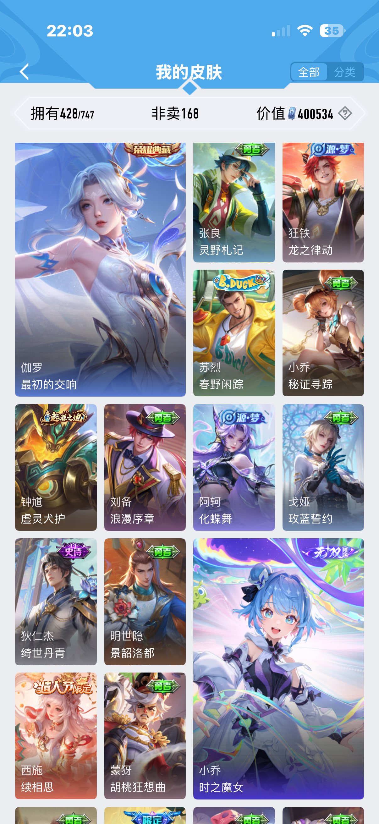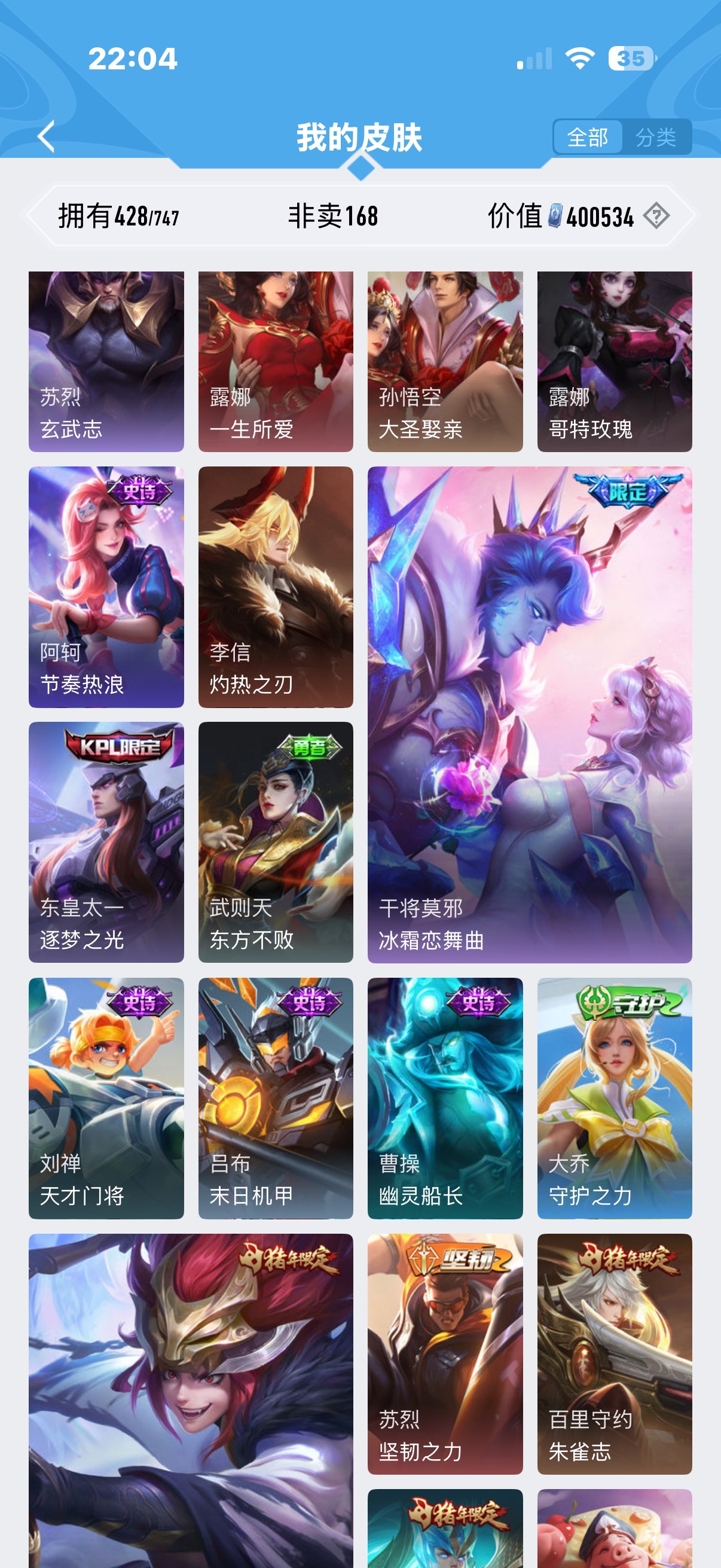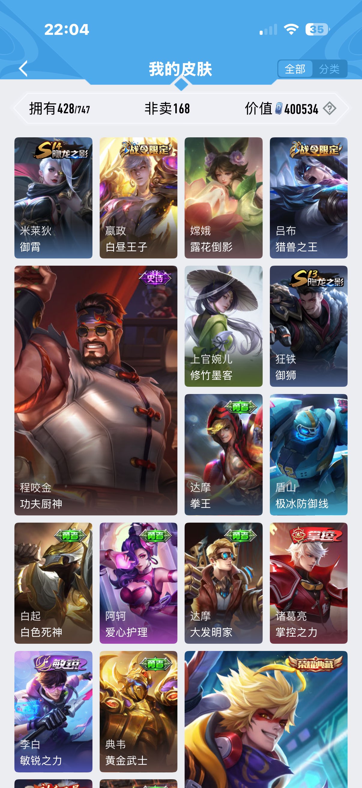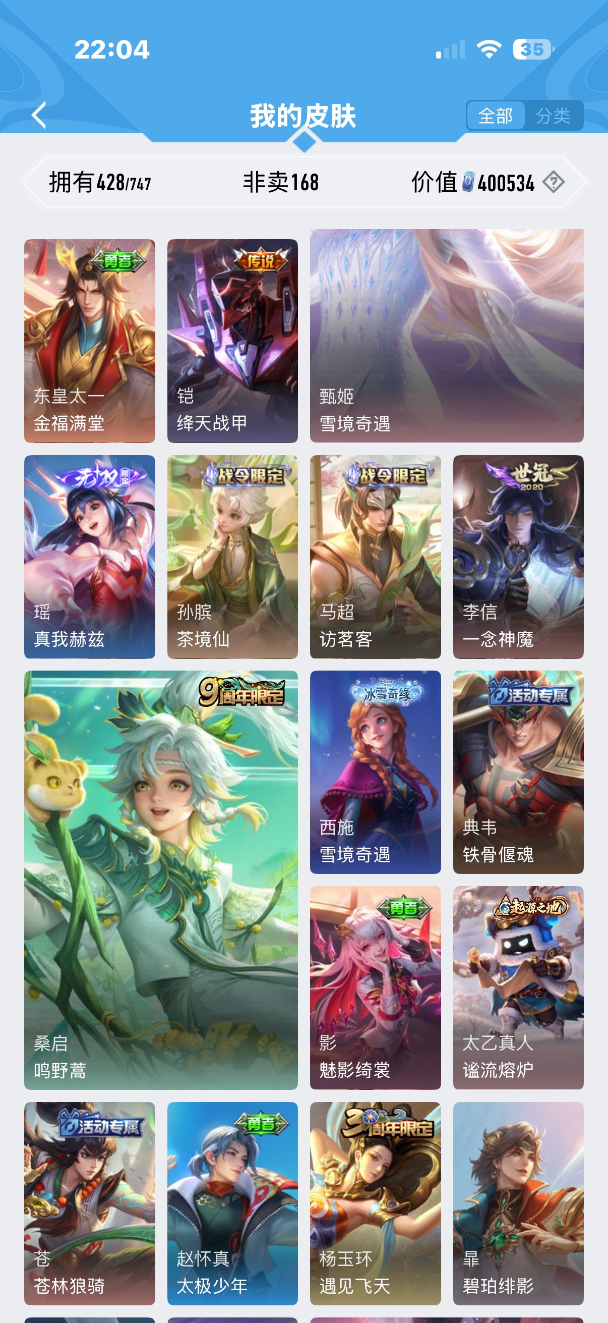 顶级v10带妹号428皮 全英雄皮无双限定 珍品传说 荣耀典藏低价出
