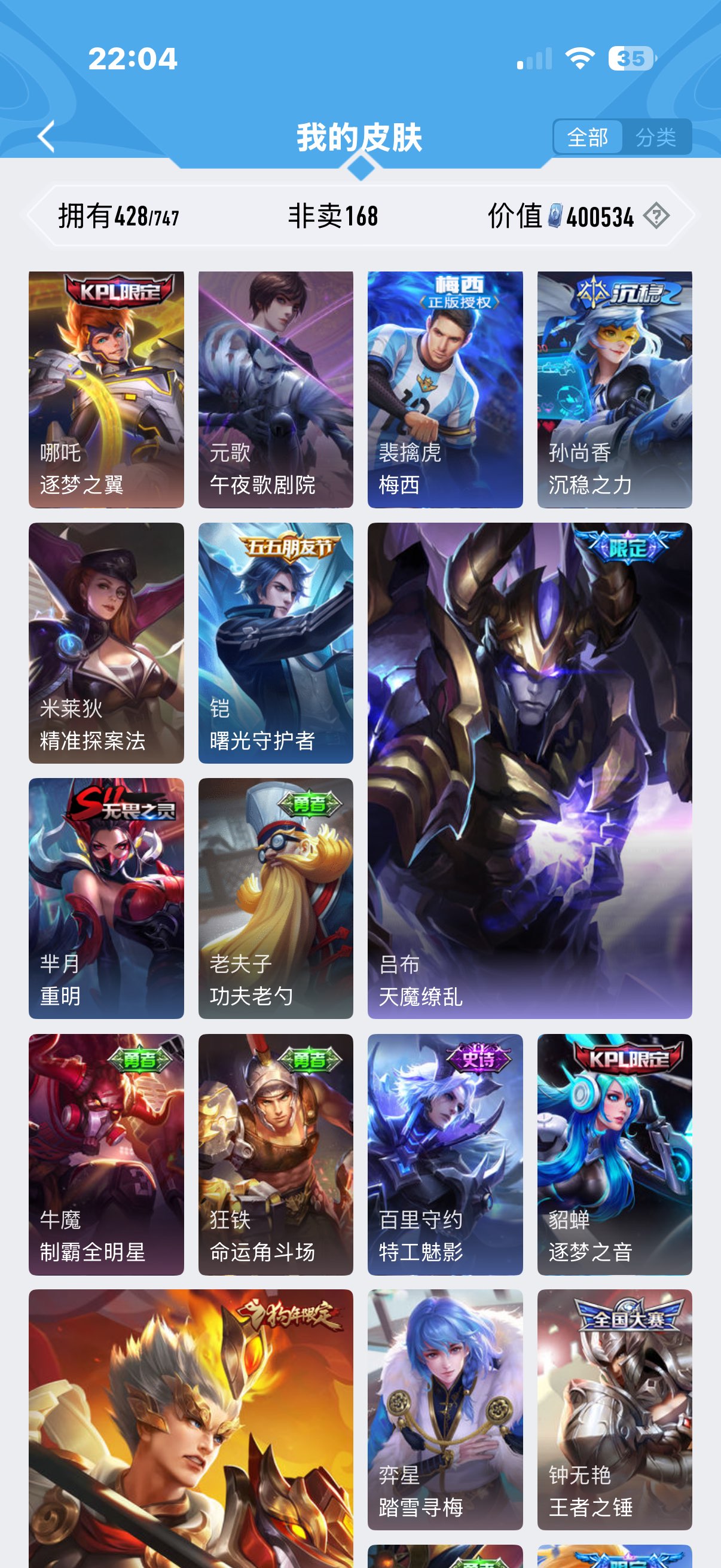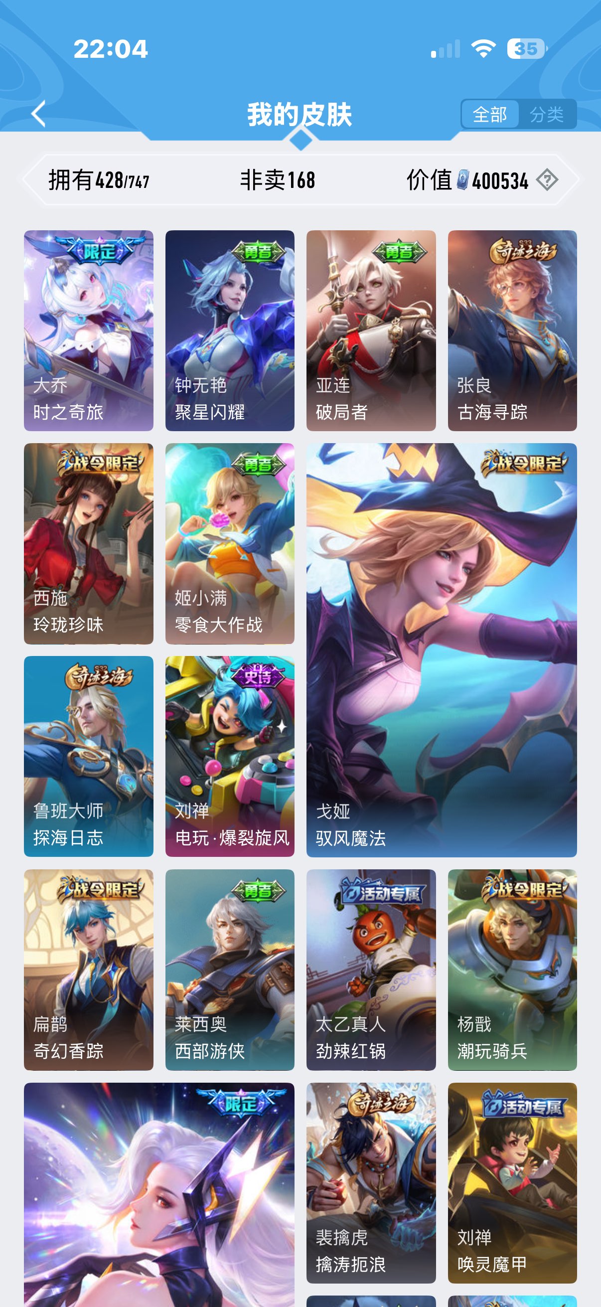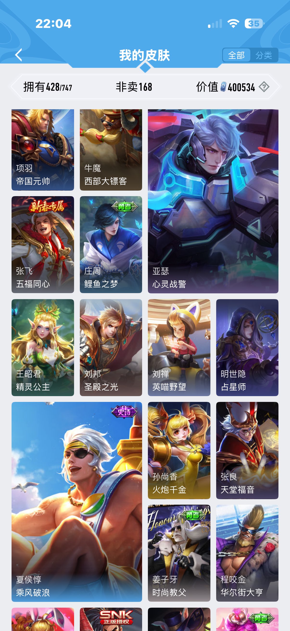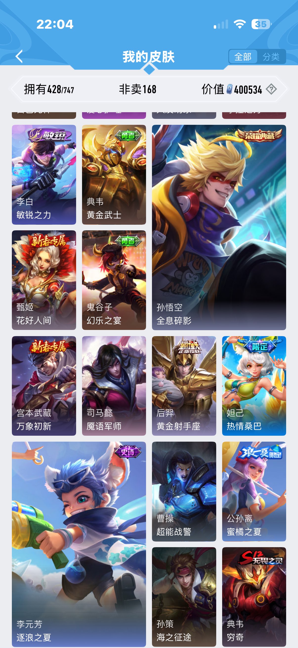 顶级v10带妹号428皮 全英雄皮无双限定 珍品传说 荣耀典藏低价出