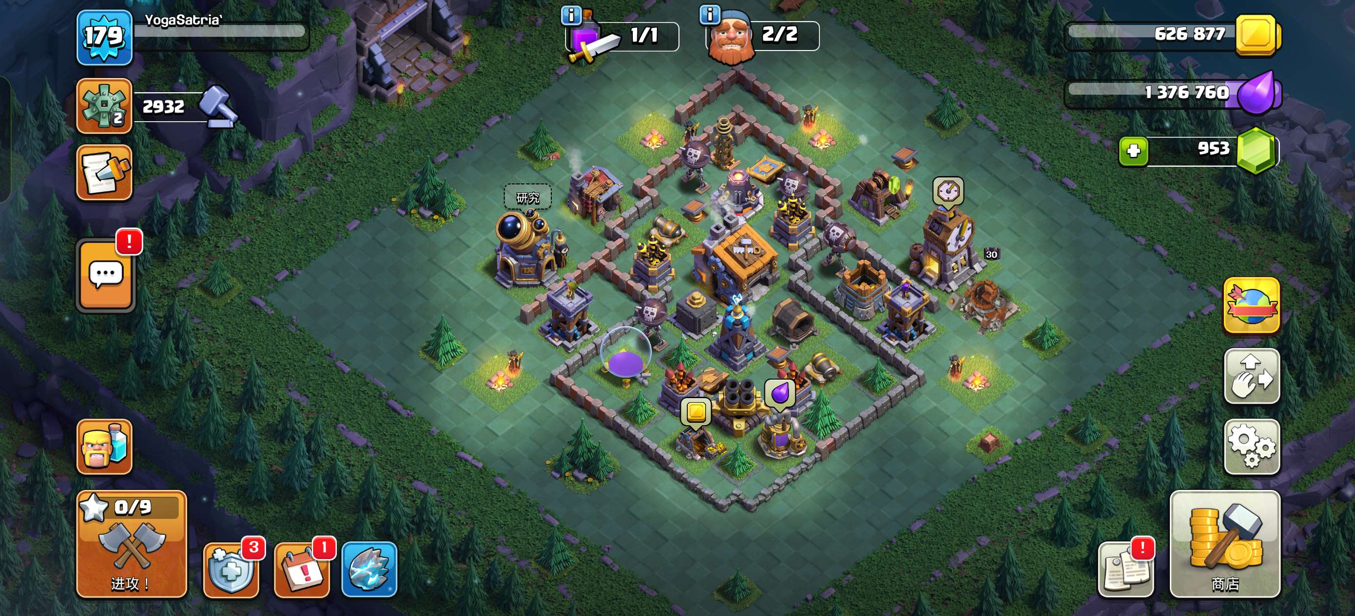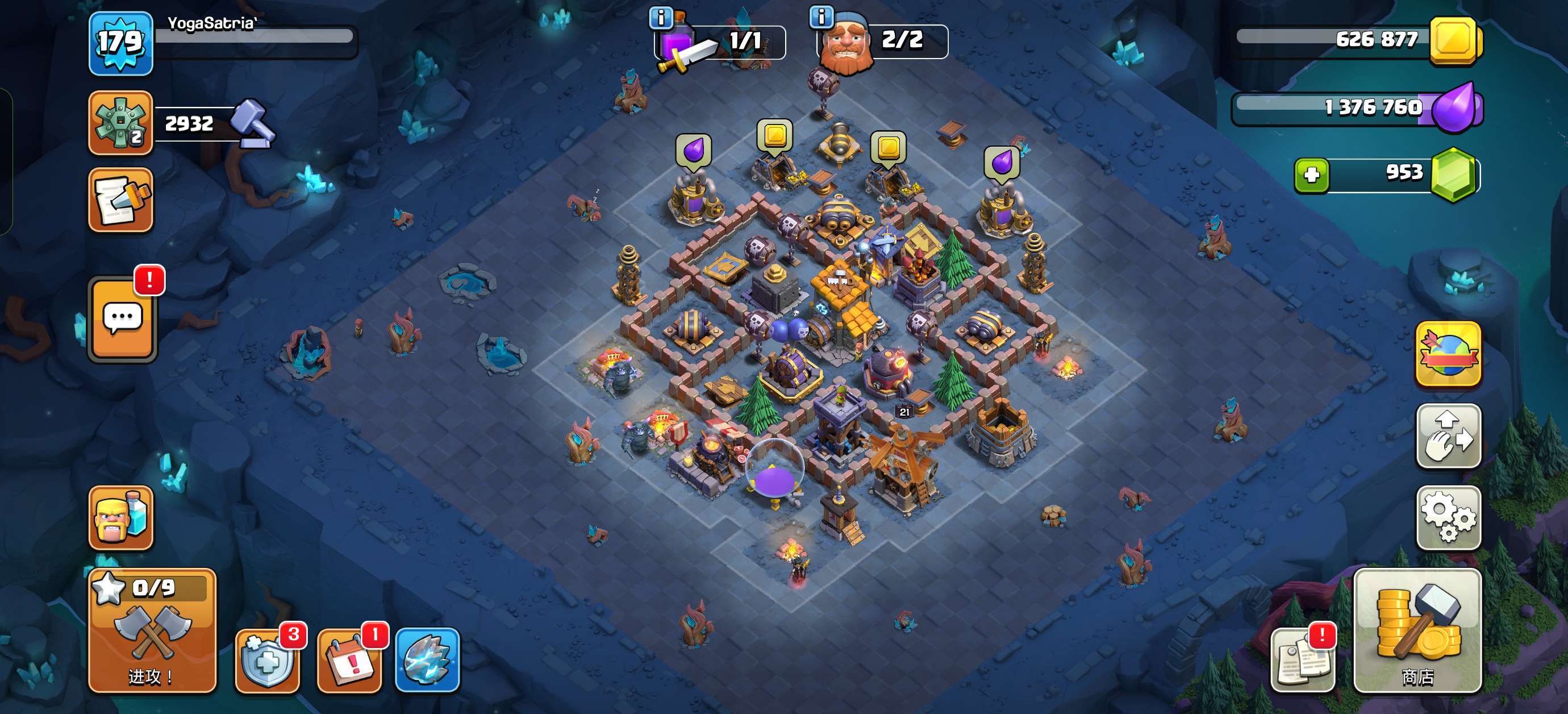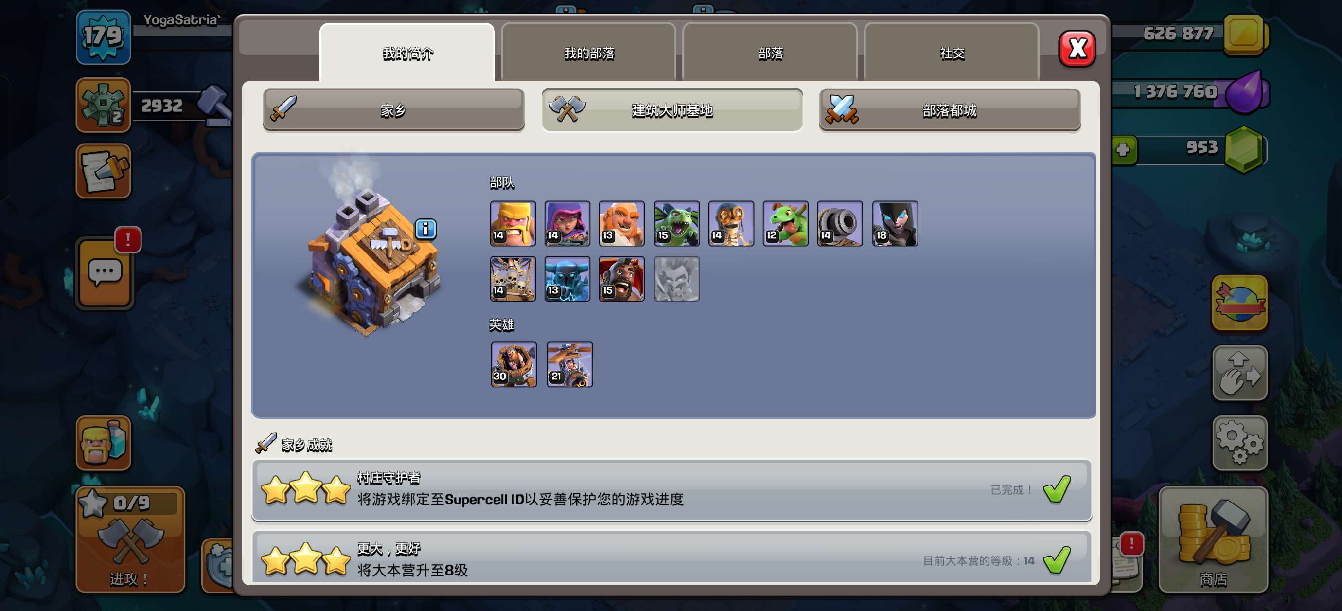 部落冲突【安卓QQ】部落冲突国际服14本,五王71-80-50-55-27,六农,折扣号首充月卡10元场景21元皮肤30