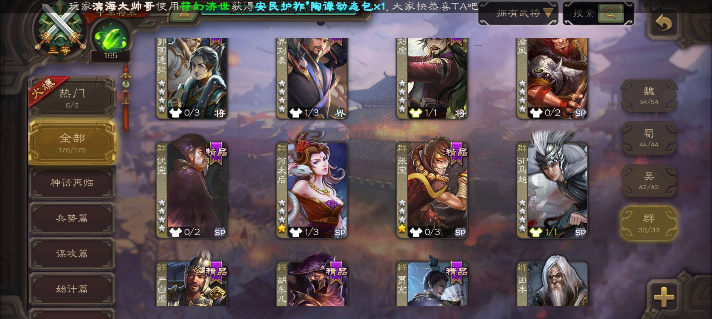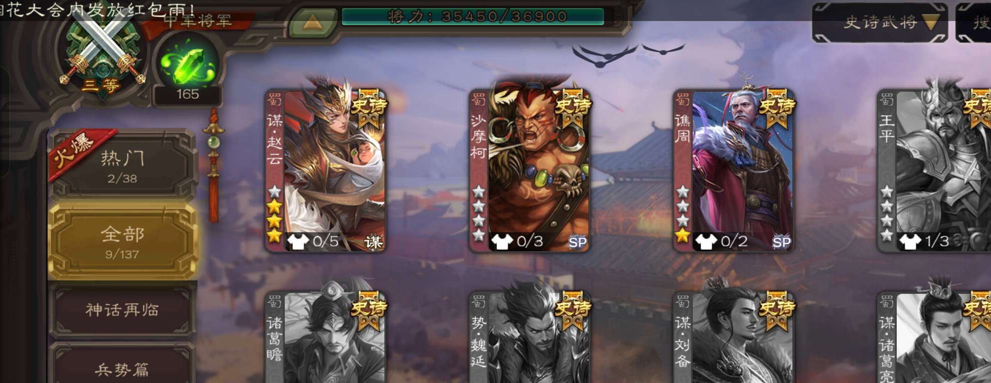9史诗3神中军,9万羽毛7万豆,戏志才界钟会神吕布沙摩柯界于禁谯周谋赵云杨修程昱神周瑜神吕蒙动界曹植