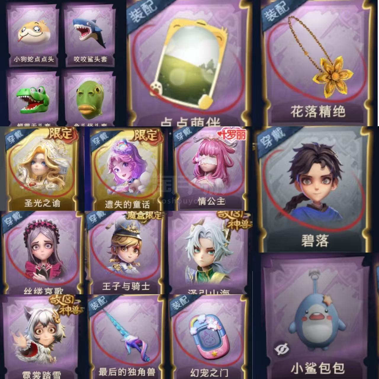 红皮1金皮3紫皮9,道具皮29,巫铃儿-镜生遗梦,薇薇安-圣光之谕,小黄-遗失的童话,巫铃儿-镜花辞