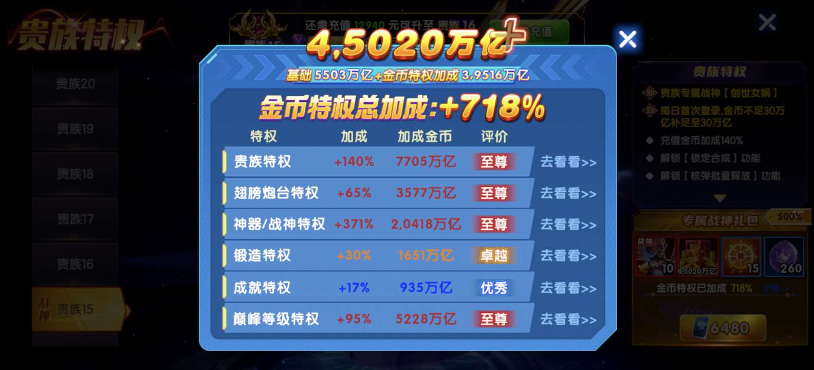金币特权加成+715%,三国机甲5.5套,圣斗士2.5套,碎片马上可换