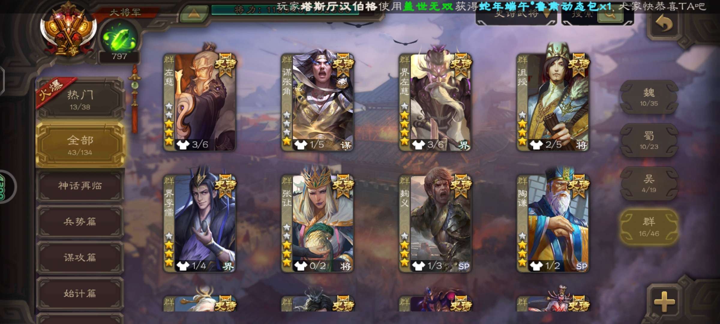 三国杀【安卓4399】三等大将军,神曹,数学家,谋关,多动皮,多史诗