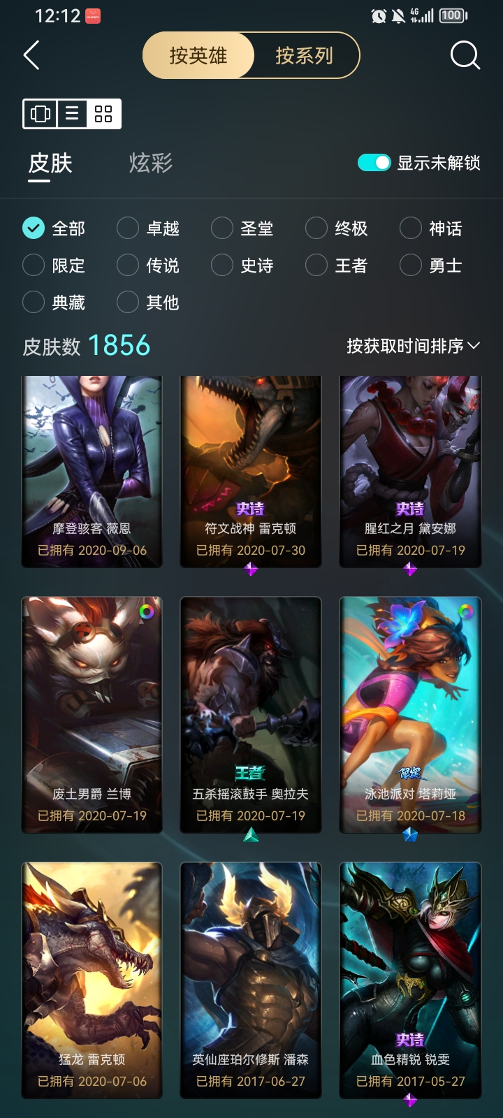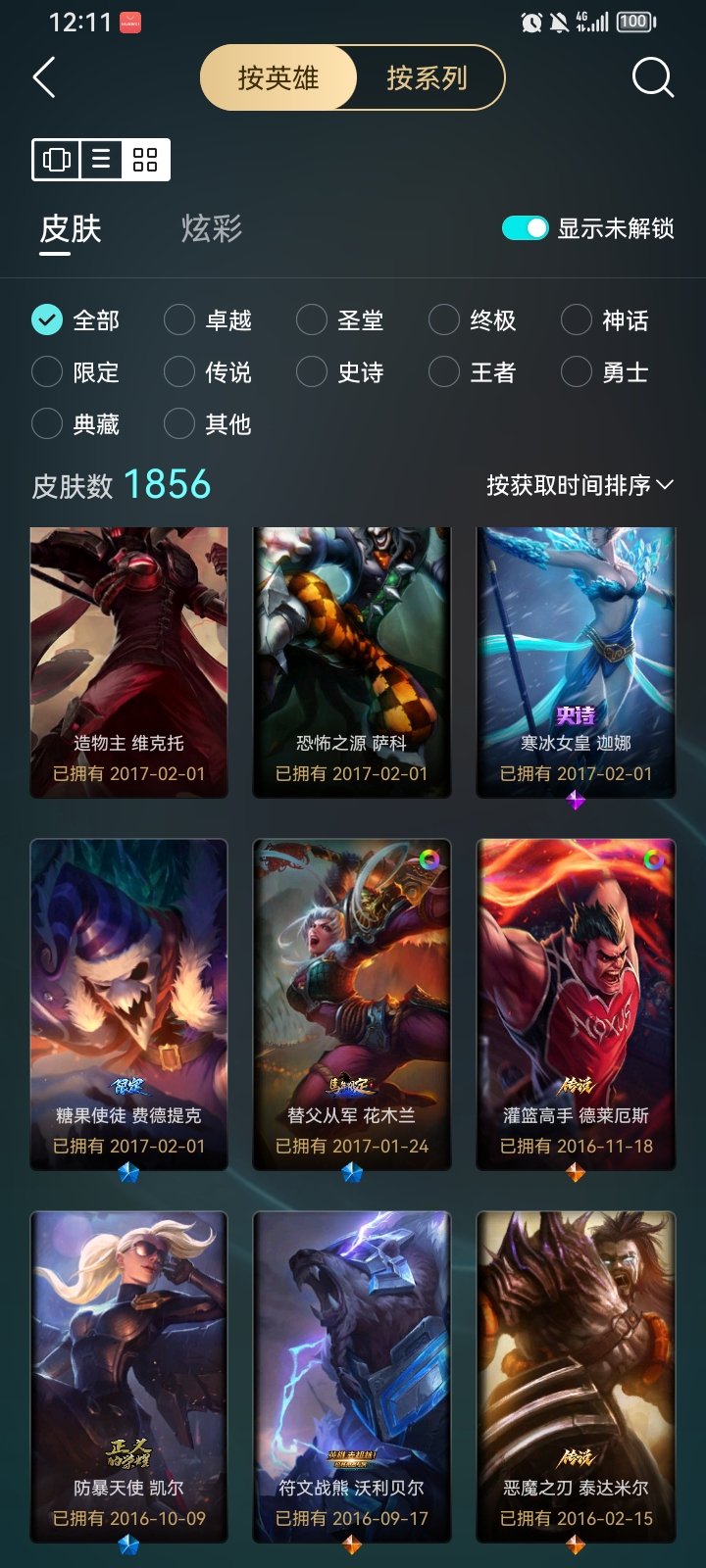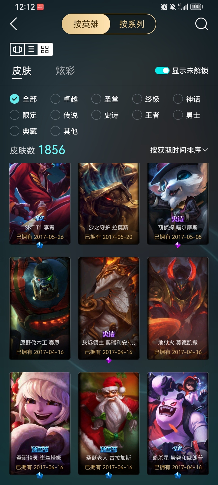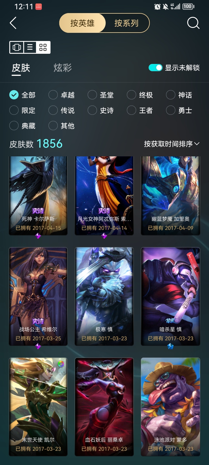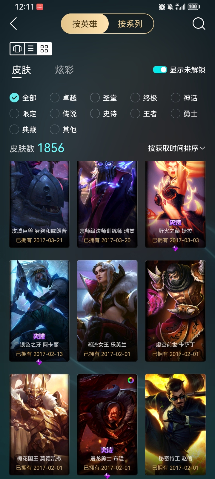 自己的账号 很久没玩了有几个限定皮肤