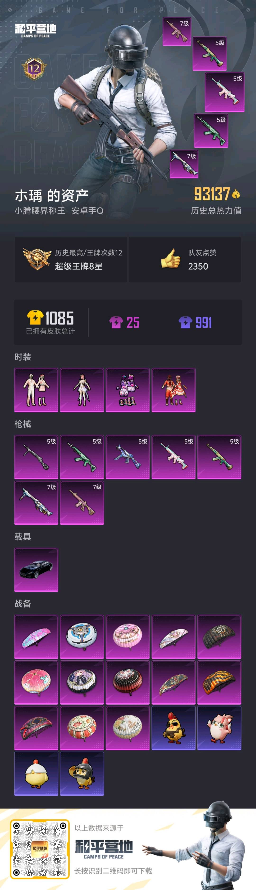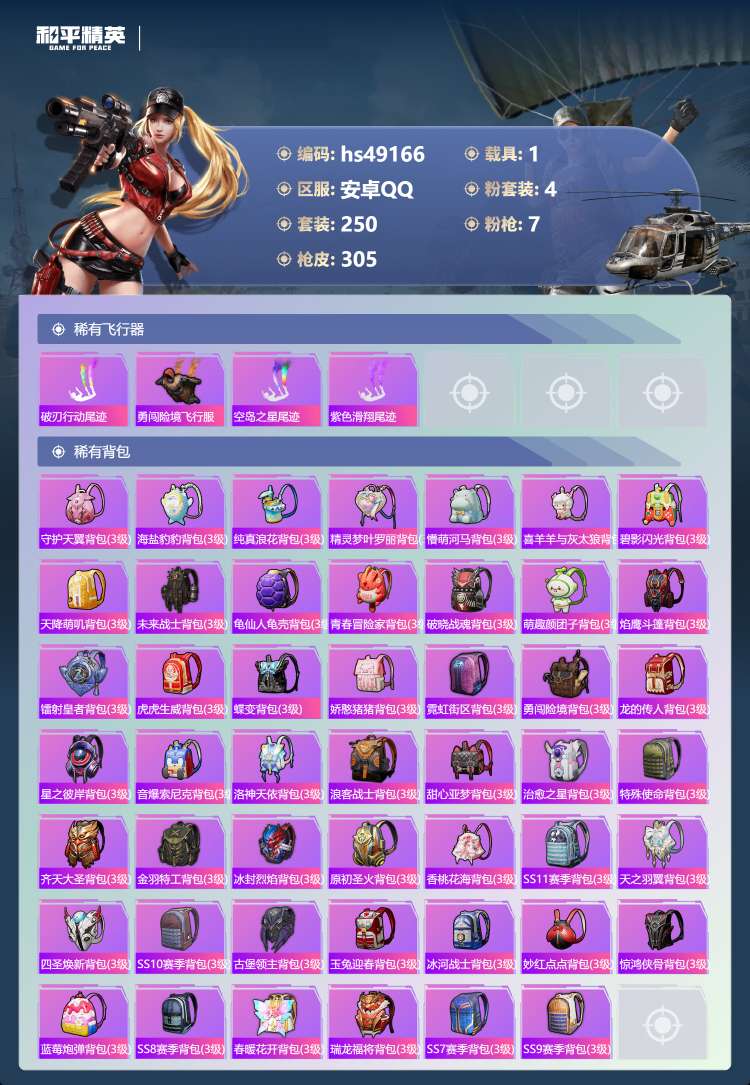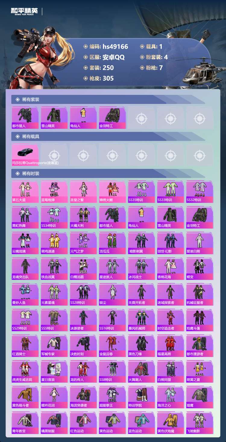 hs49166 安卓手Q-12王牌印记-4粉装-7特效枪-1载具-93137热力值-250套装-30