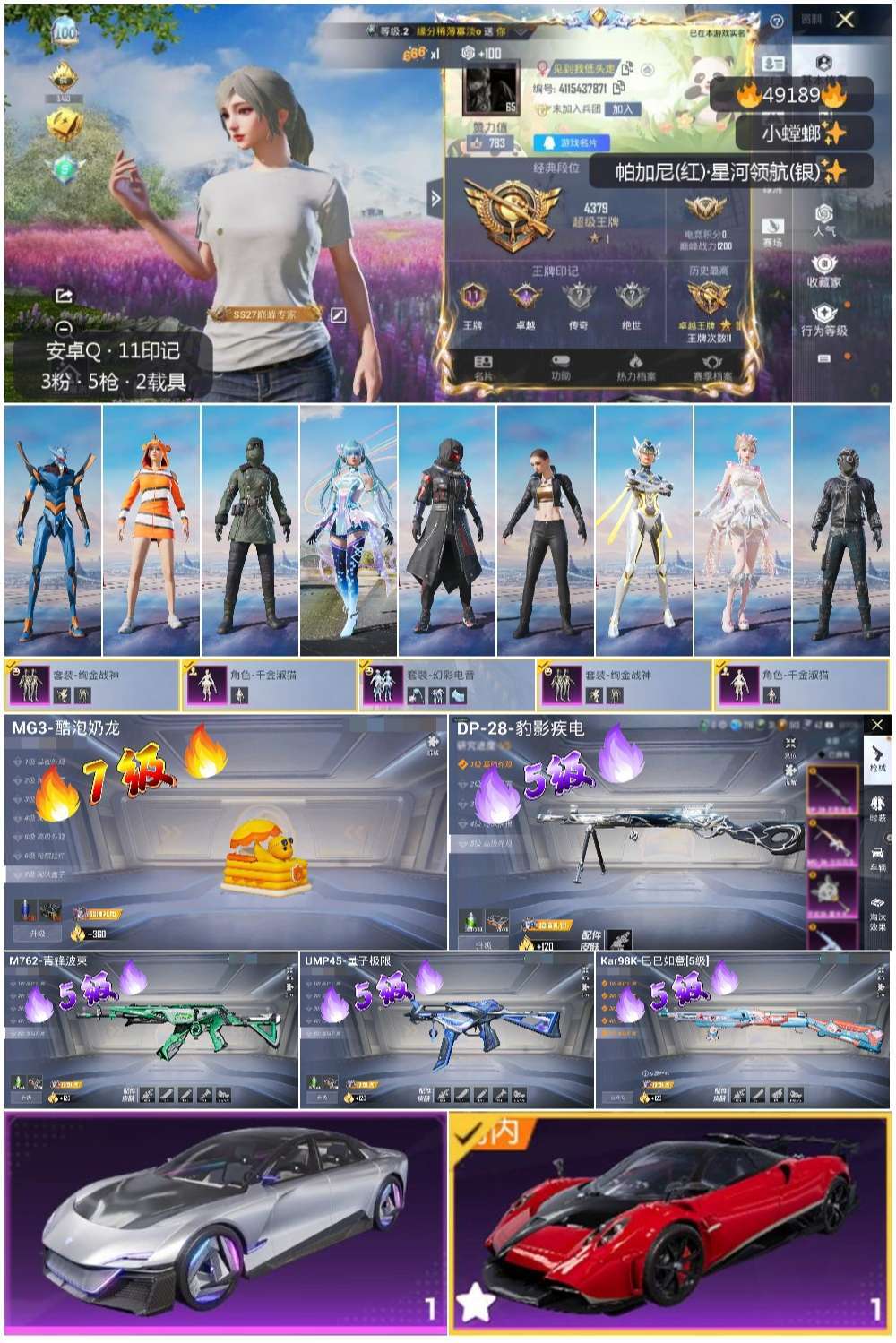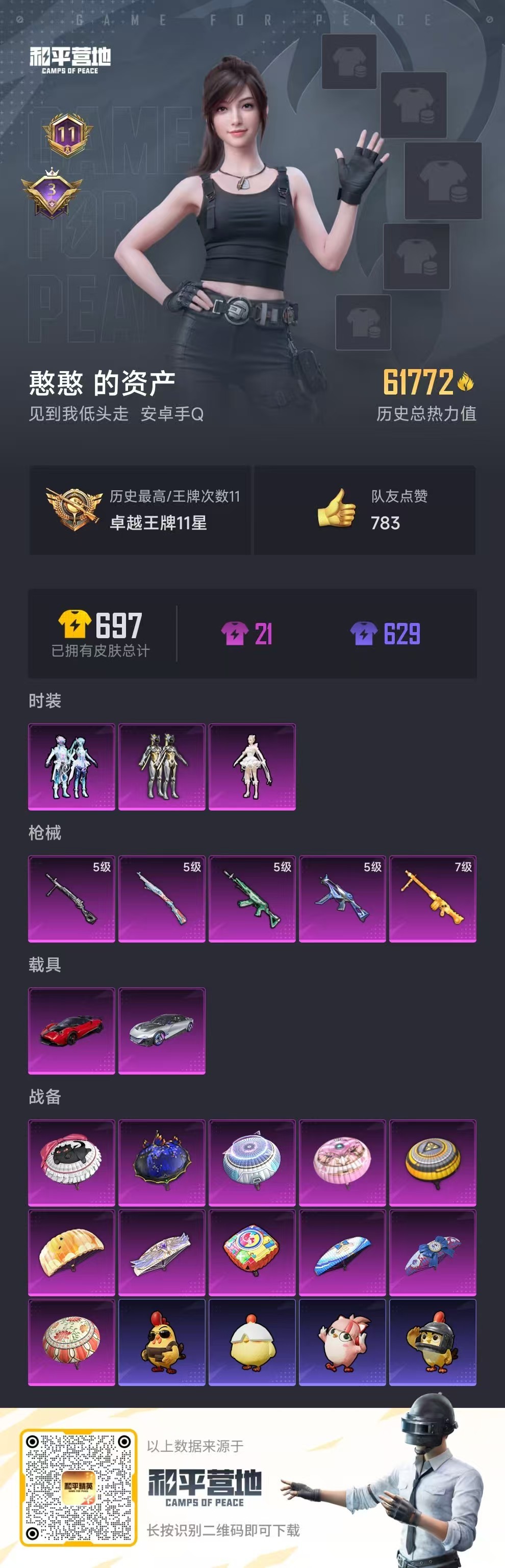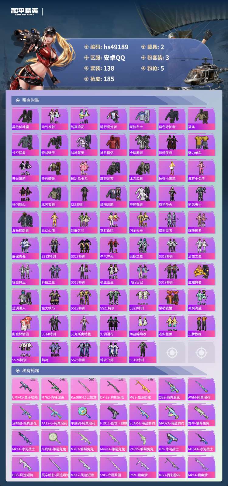 hs49189 安卓手Q-11王牌印记-3粉装-5特效枪-2载具-61772热力值-138套装-18