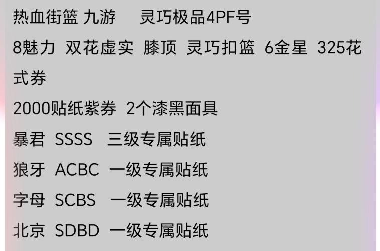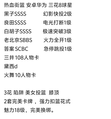 热血街篮【安卓九游】安卓九游 陷阱魅力20级9金刚星星SSSS 专属3级黑鲨SDDD 专属1级轰 SD