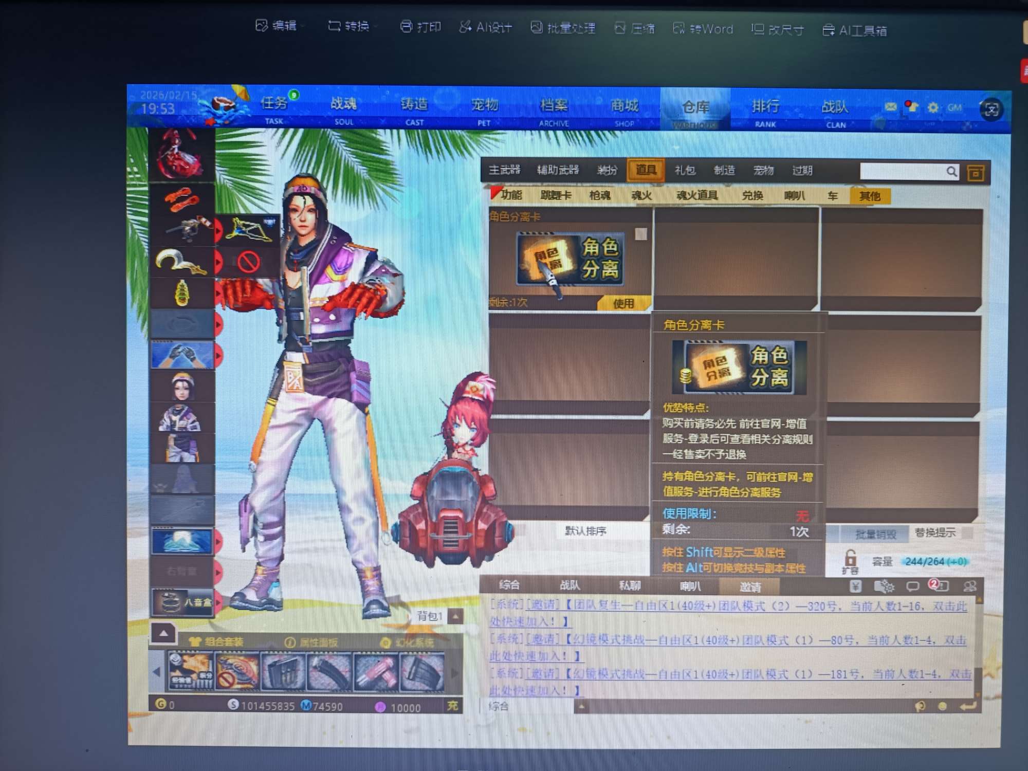 02有角色分离卡一切能转移到你的号上1514个卷轴12个宝石5把8.5枪副本炮姐副本套装爆破套装看图