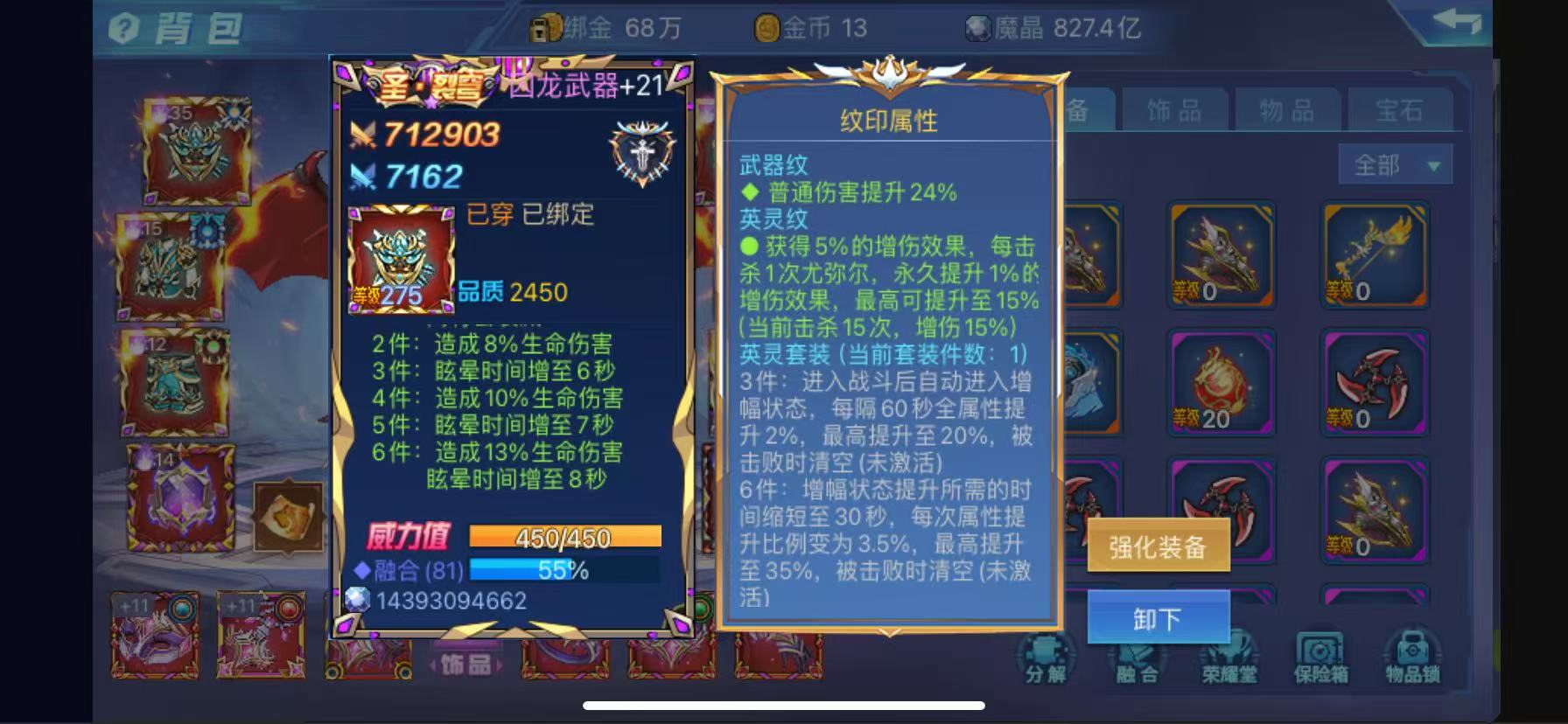 1296万星魂满战甲觉醒圣裂穹六件套装备(六纹章),星魂守护神灼烧有徽章卡片,多角色觉醒,VIP10级,机甲只差1个,斩魂也有灼烧,饰品还有一件圣冥鳞,带800亿魔晶,苹果国服可换绑