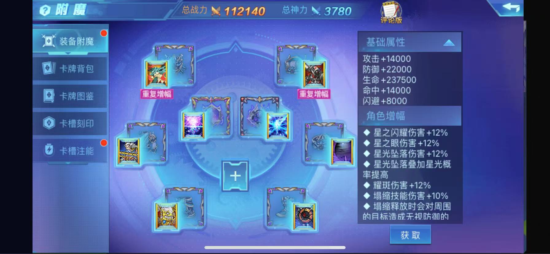 时空猎人【苹果官方】合33大区 1296万星魂满战甲觉醒圣裂穹六件套装备(六纹章),星魂守护神灼烧有徽章卡片,多角色觉醒