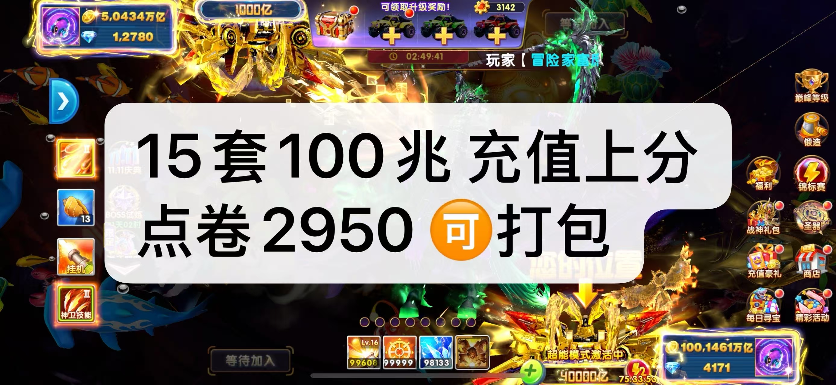 捕鱼大作战官方版本出租金币号/出售账号10-1000兆金币号