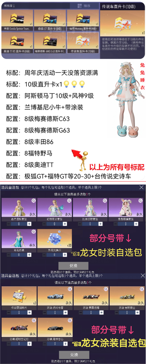 (可自选)4000纪念币十级指定多补给车高资源精品号
