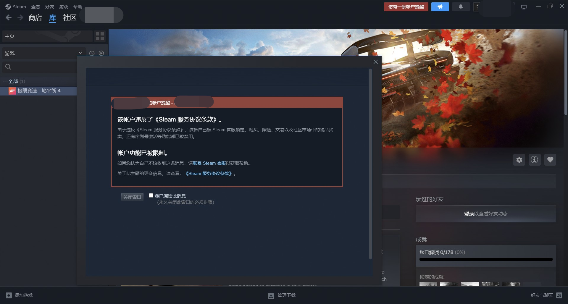 Steam账户被限制了,如图所示,可以正常玩地平线4,不影响地平线4