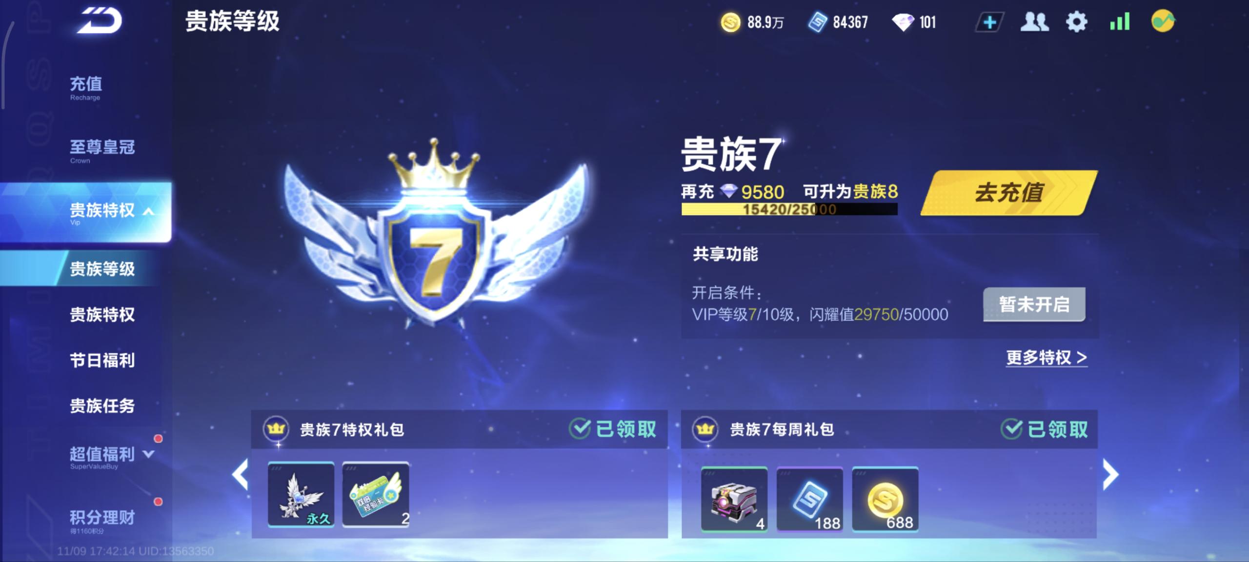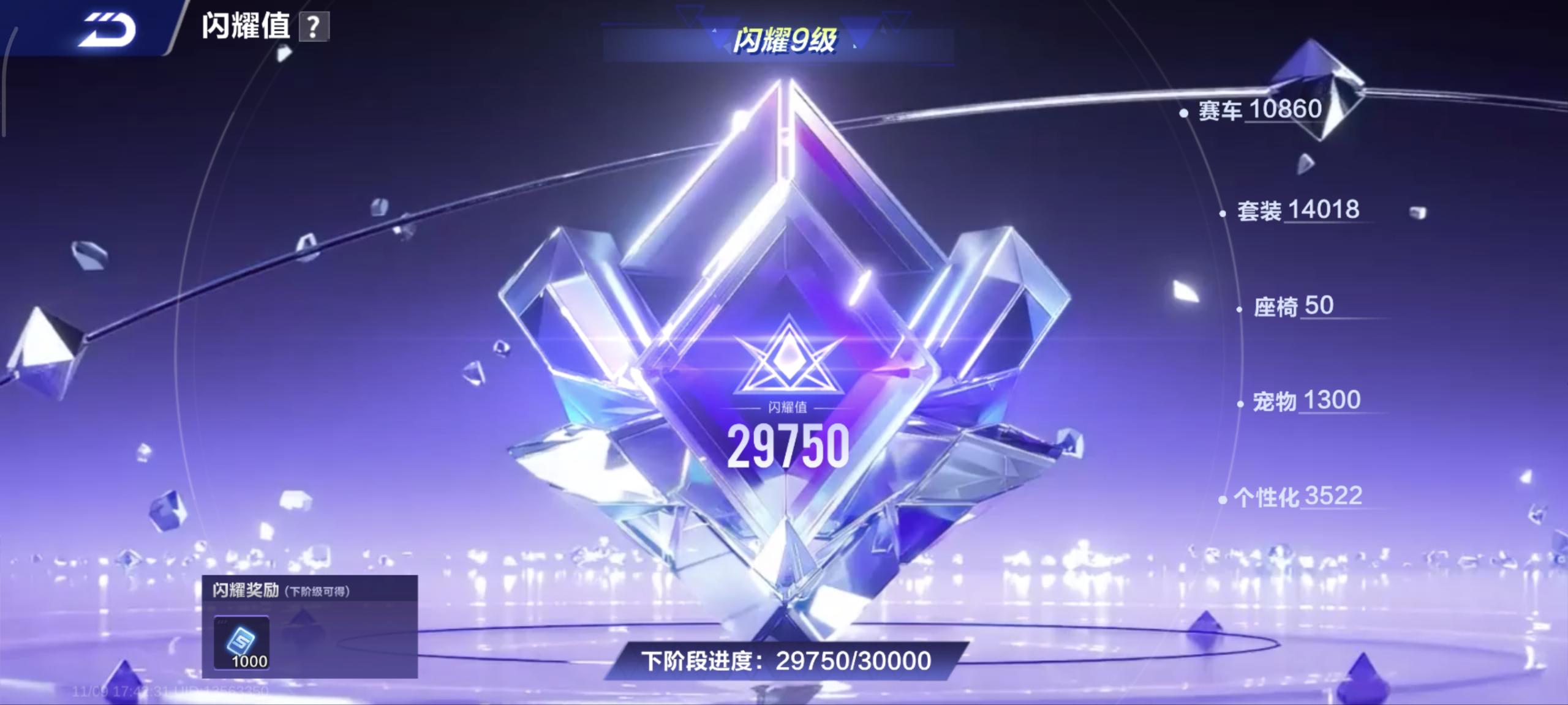 霆光+月影2联赛A车数量29游戏等级75贵族等级7车皮肤数量