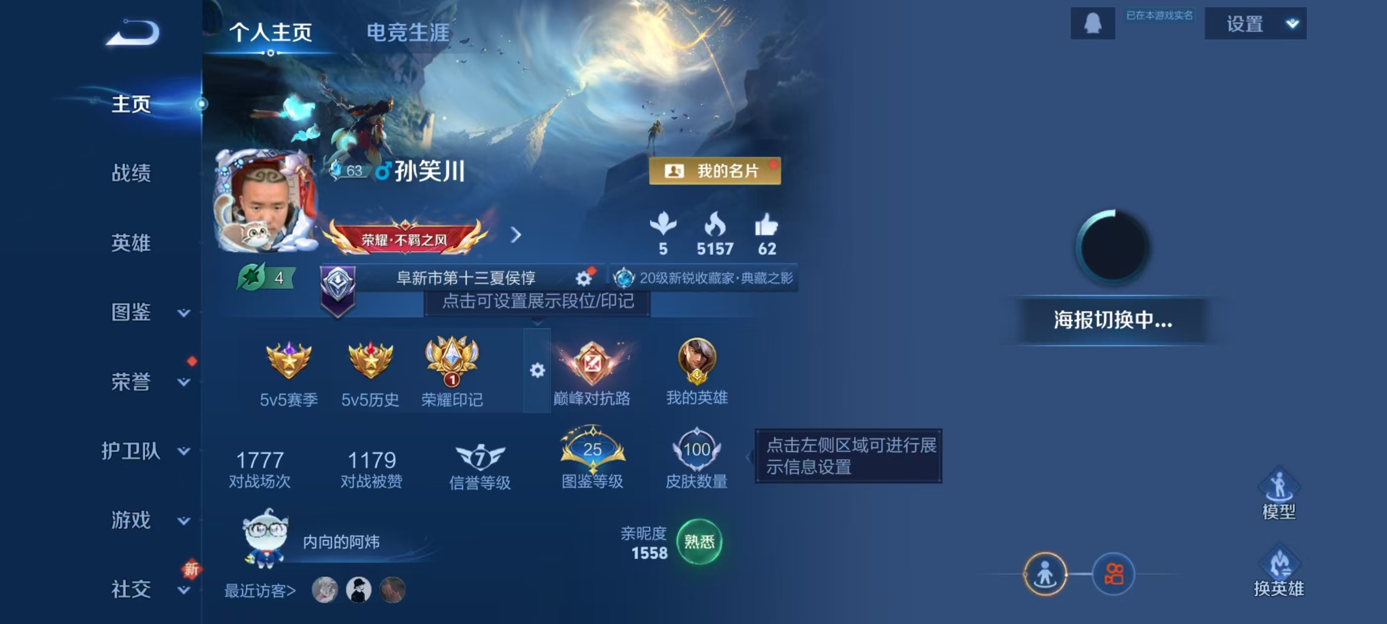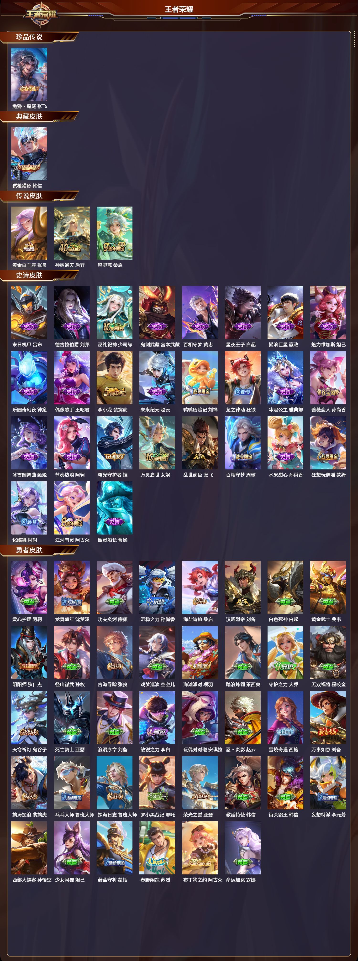 安卓QQ/无双王者/100皮肤/115英雄/1典藏/0珍品无双/0无双/1珍品传说/3传说/27史诗