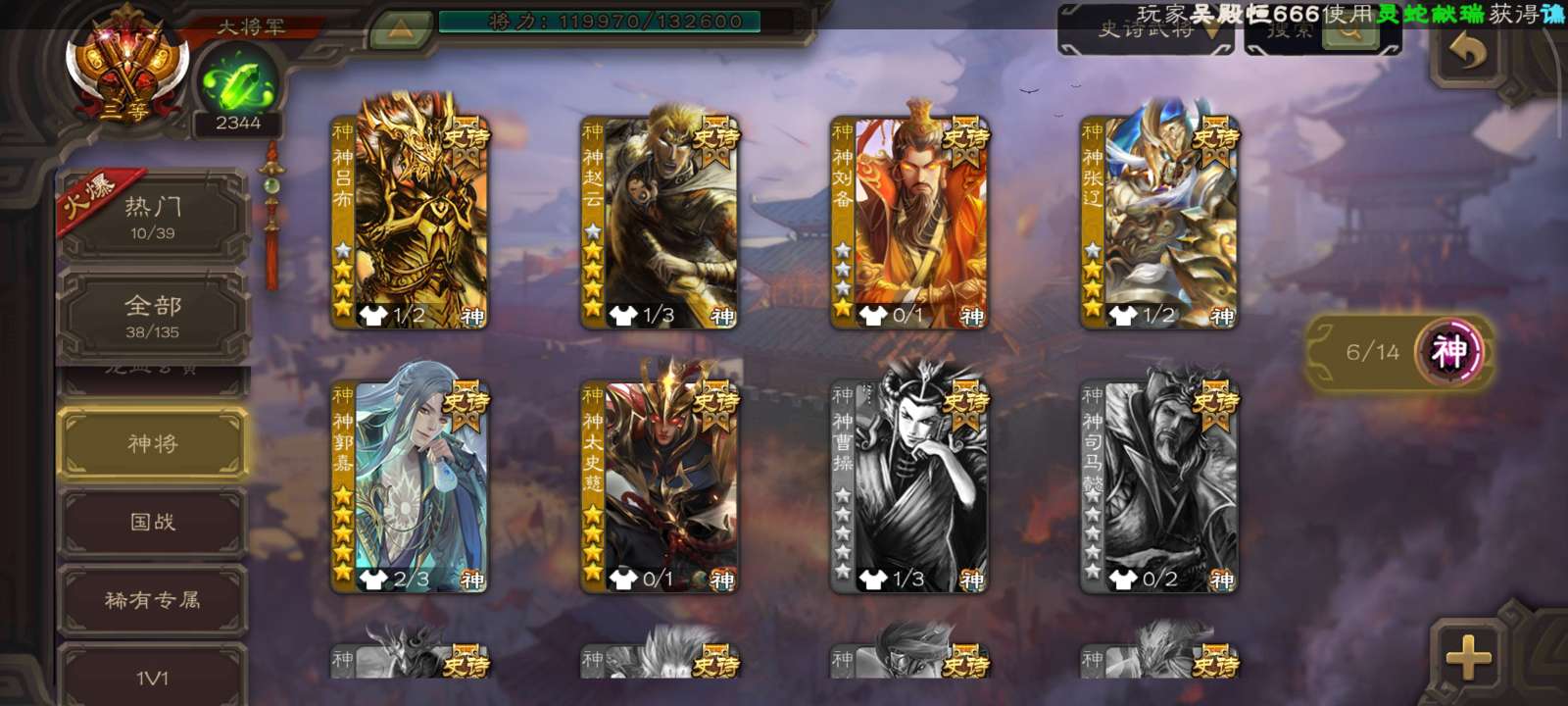 三国杀无敌大将军,双形态神郭嘉,动皮孙寒华,曹髦等等强力史诗
