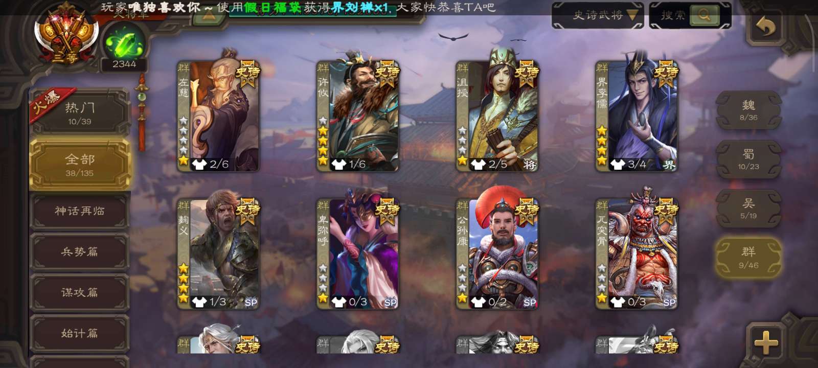 史诗武将数量: