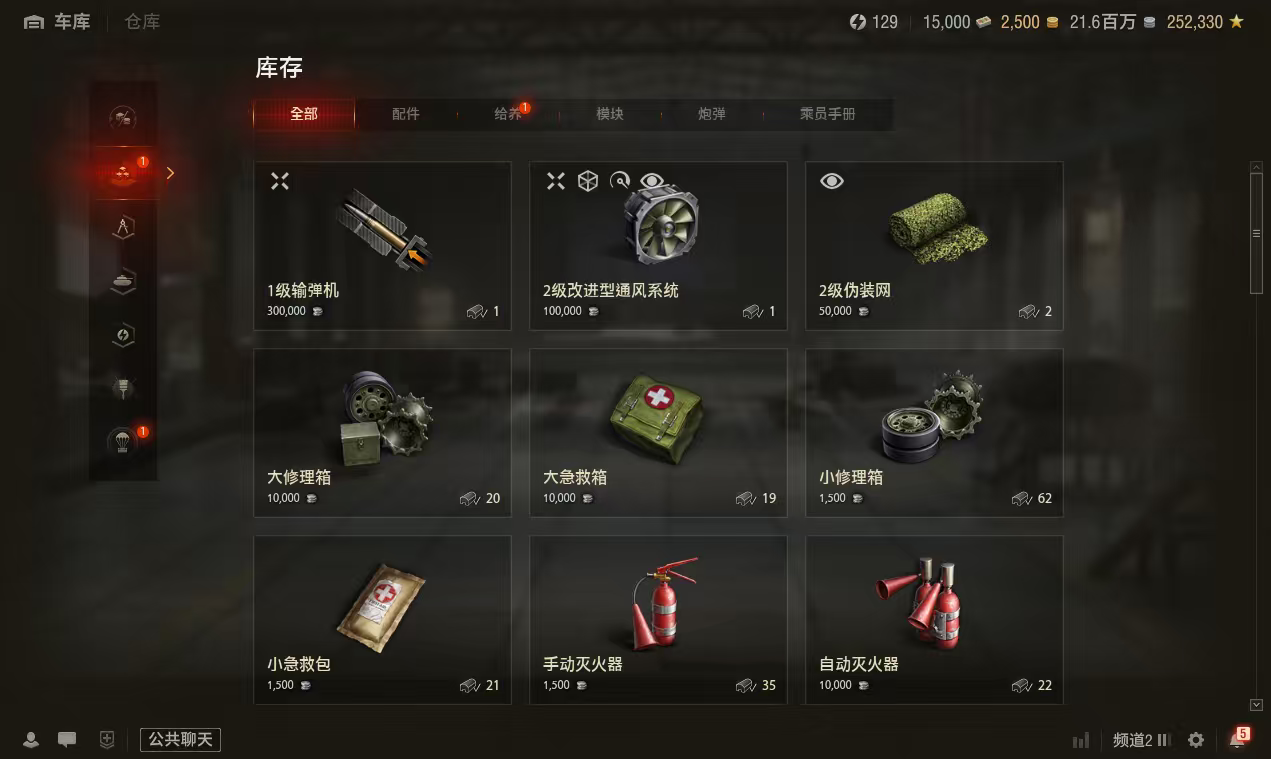银币2100万、个人储备129个、债券15000、全局25万 、金币2500 2辆10级车:FV