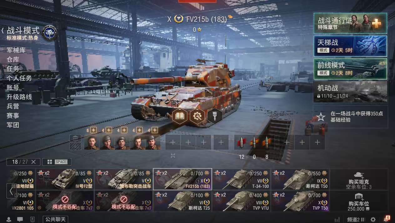 z786坦克世界账号183TVPT50银币2100万债券15000全局25万金币2500