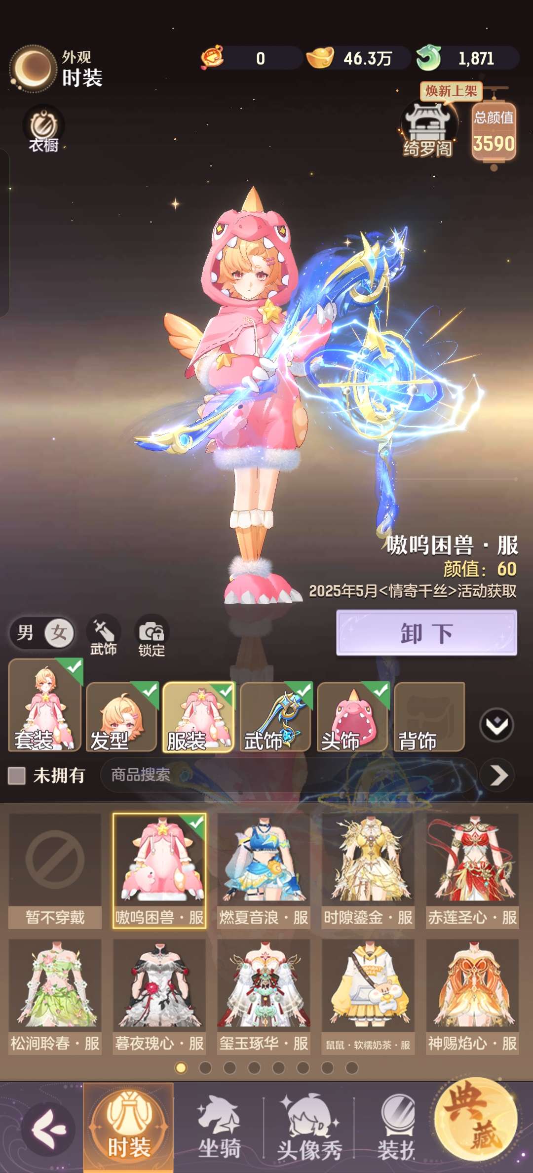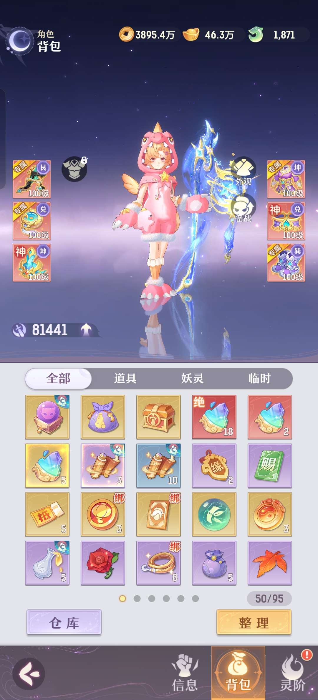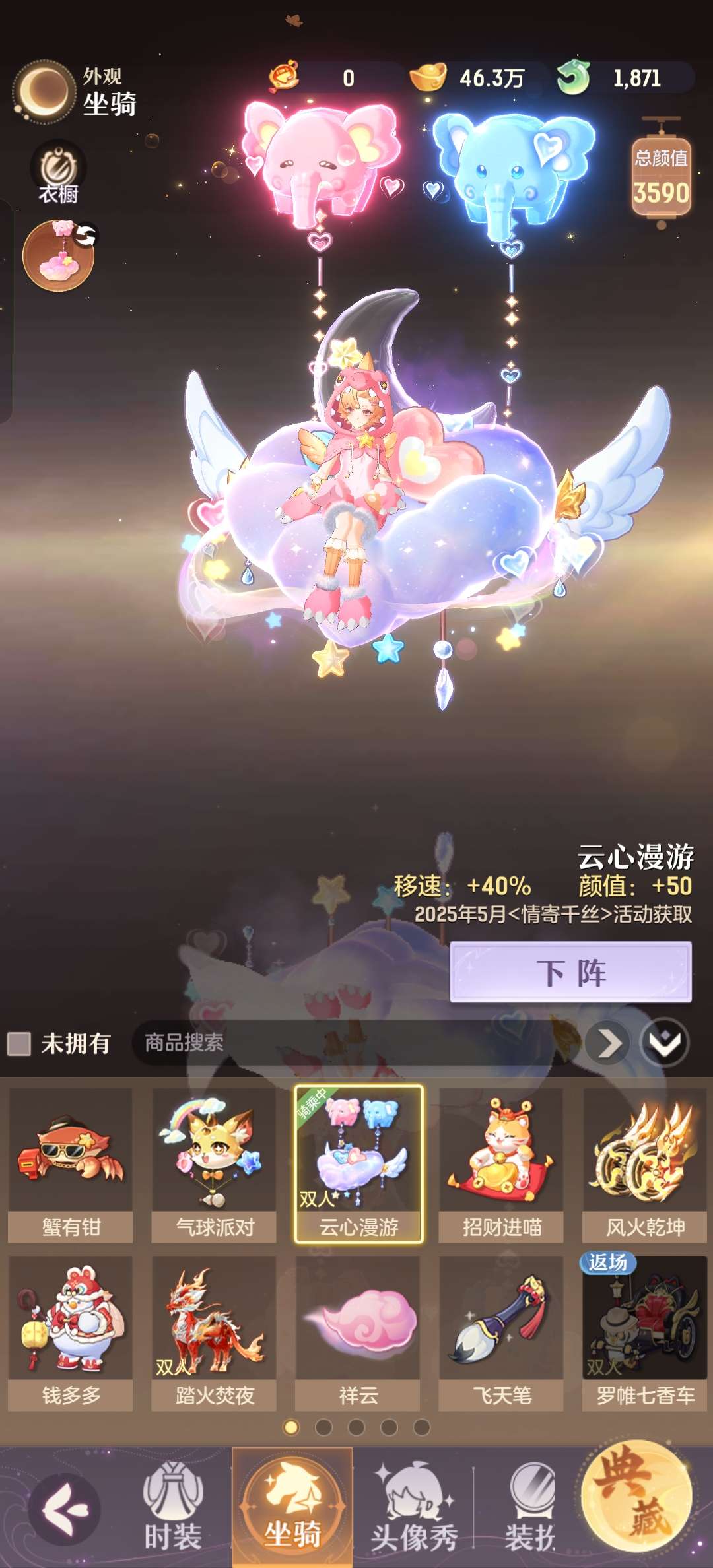 装备齐全,时装坐骑都有,云心漫游坐骑,嗷呜困兽套装