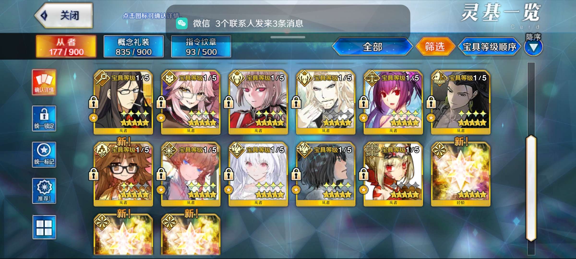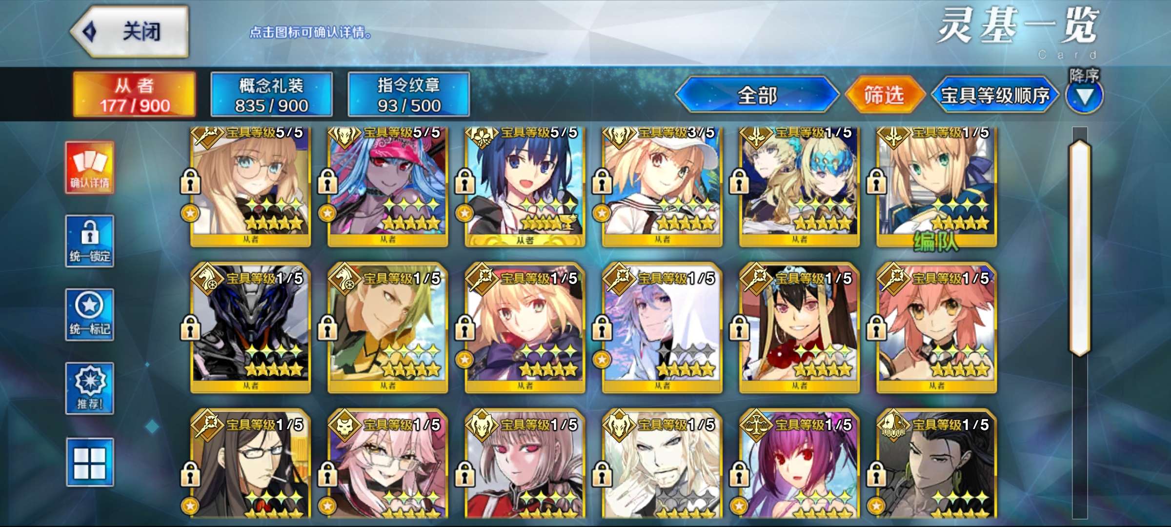 命运-冠位指定【安卓官方】五宝学姐,五宝梣,五宝水伊吹,三宝狂呆,拐齐全,满破黑杯,还有4000多石头,材料齐全