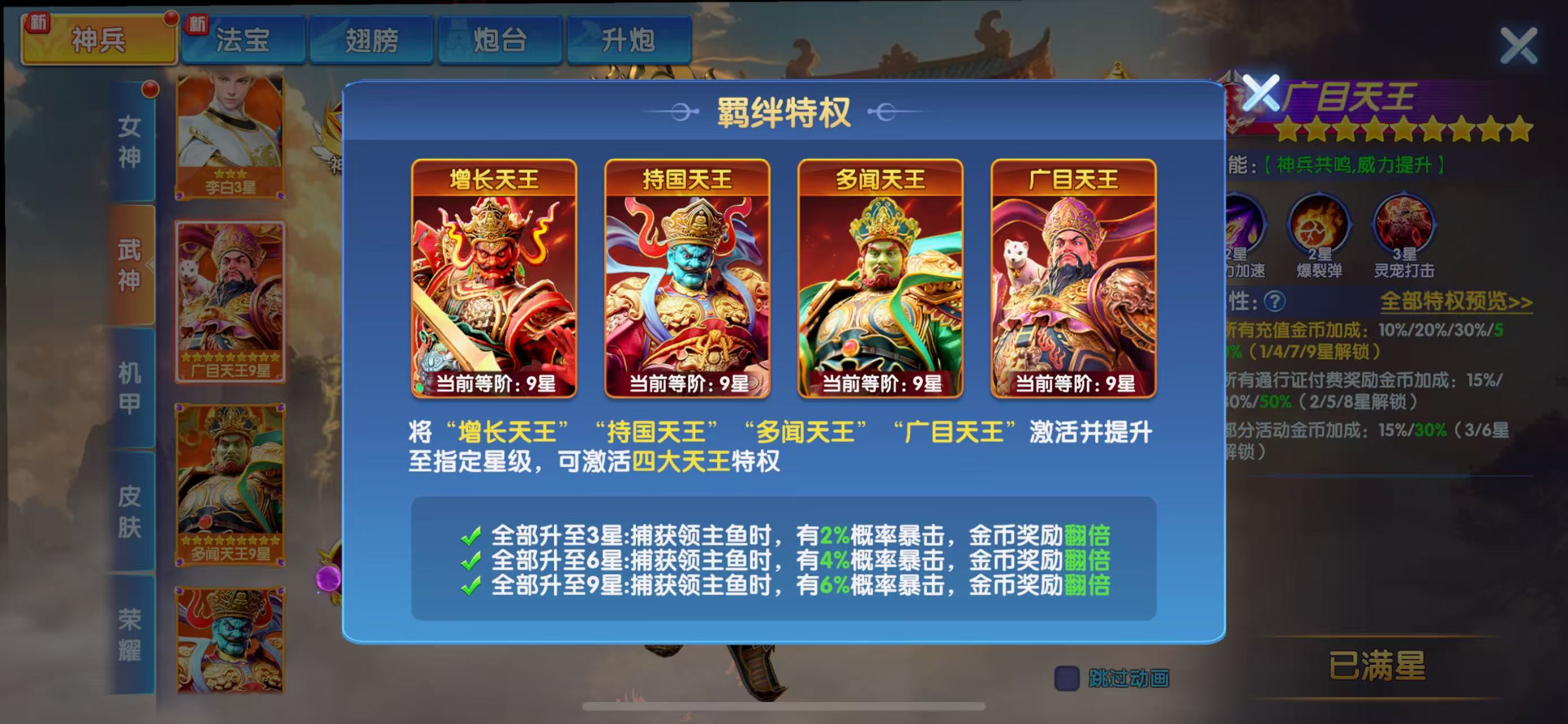 长期出租乐乐捕鱼v4-6账号 高炮台高羁绊 所有账号都有3星以上连击神兵和狂暴之刃 万亿仅需15米