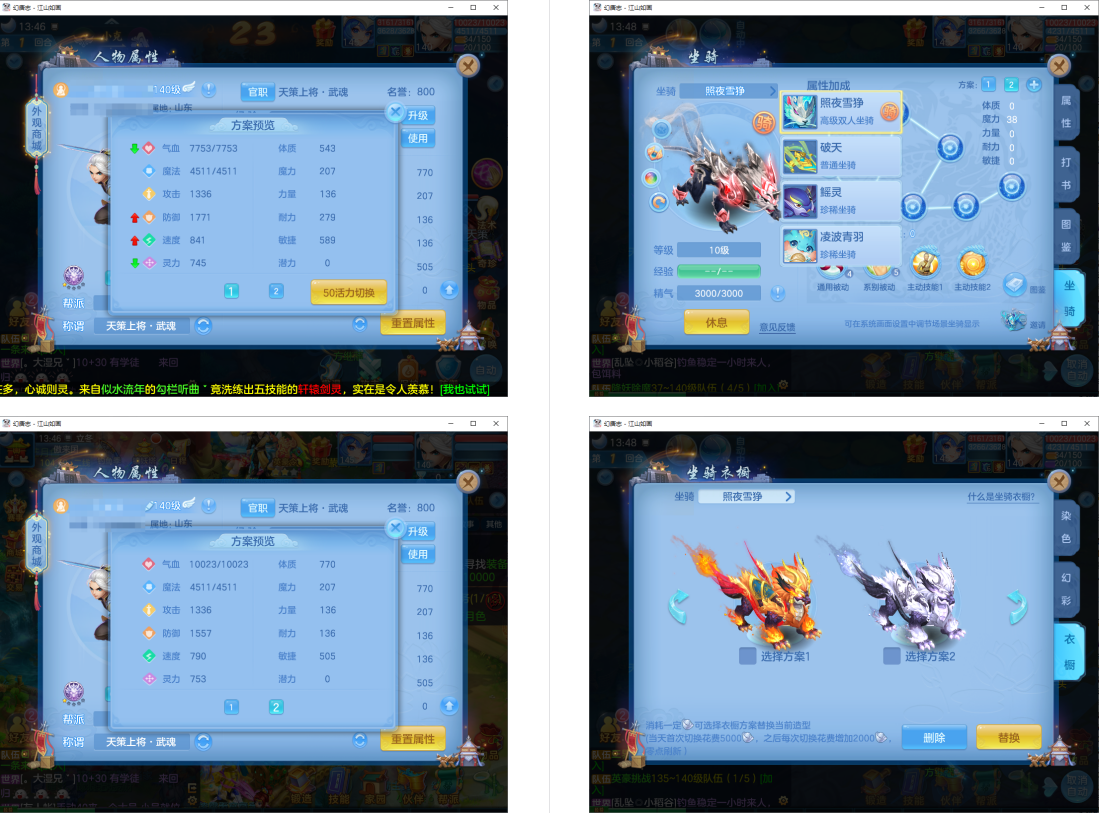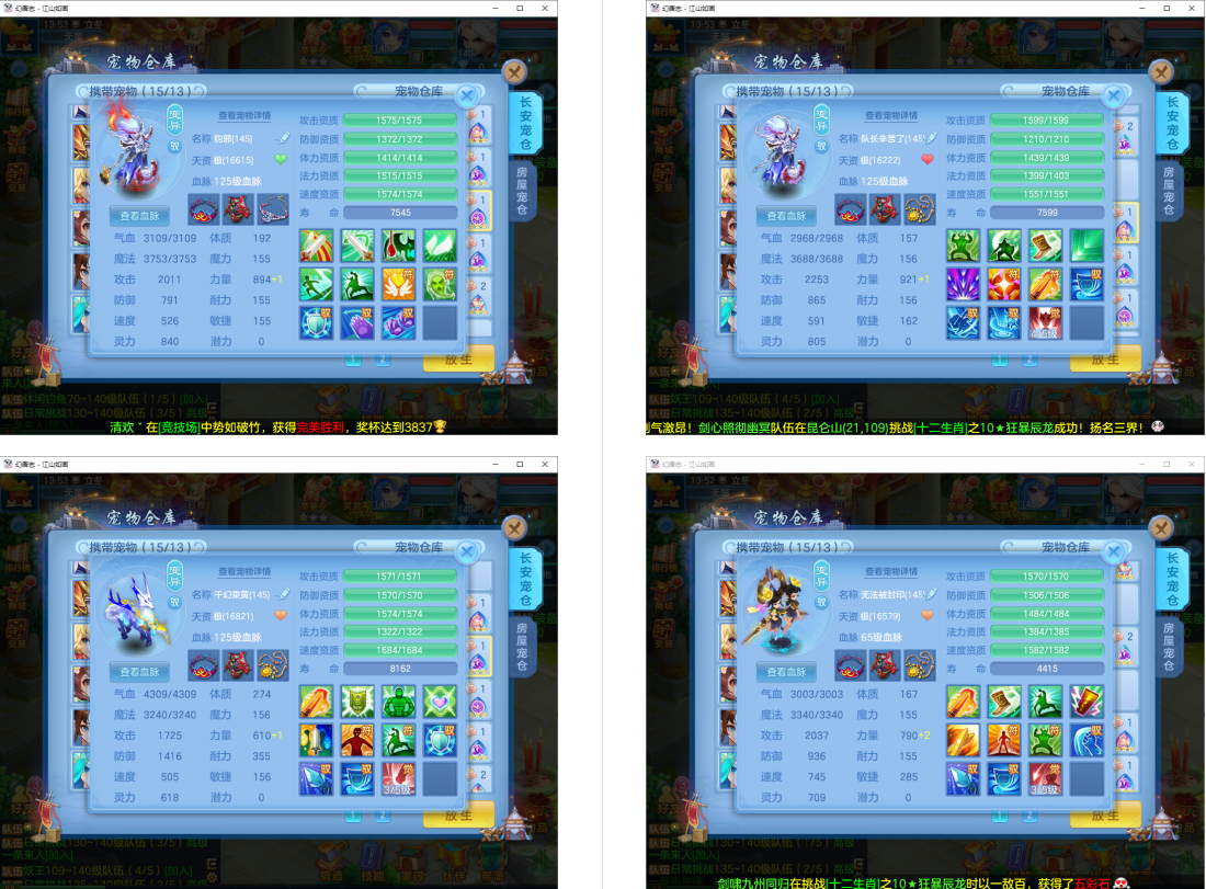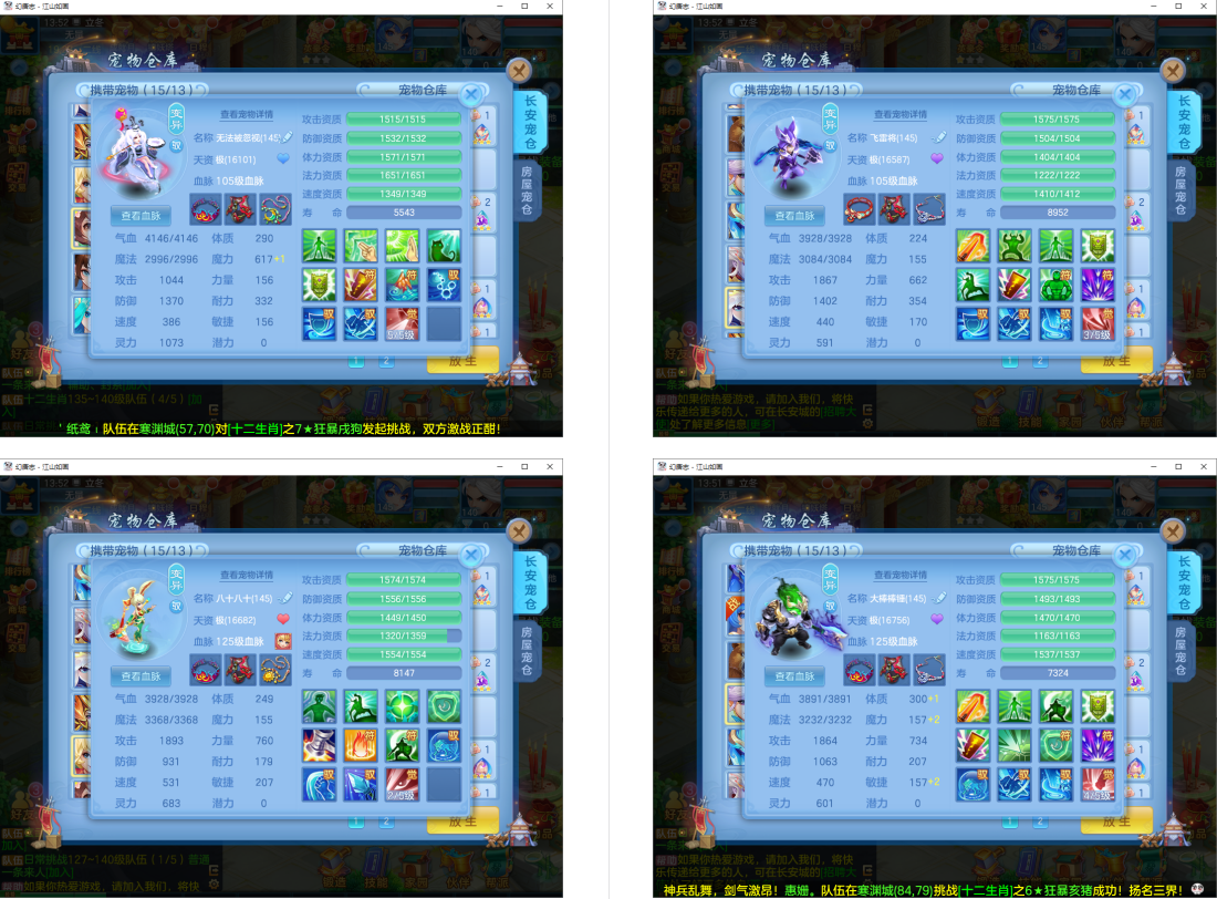 5件12段1件10段1件8段,特技装,内丹神兽蛇+11个6多特殊5(4满魂兽+2准满),4专属血脉,高级坐骑+海景房,310万银子,3089成就