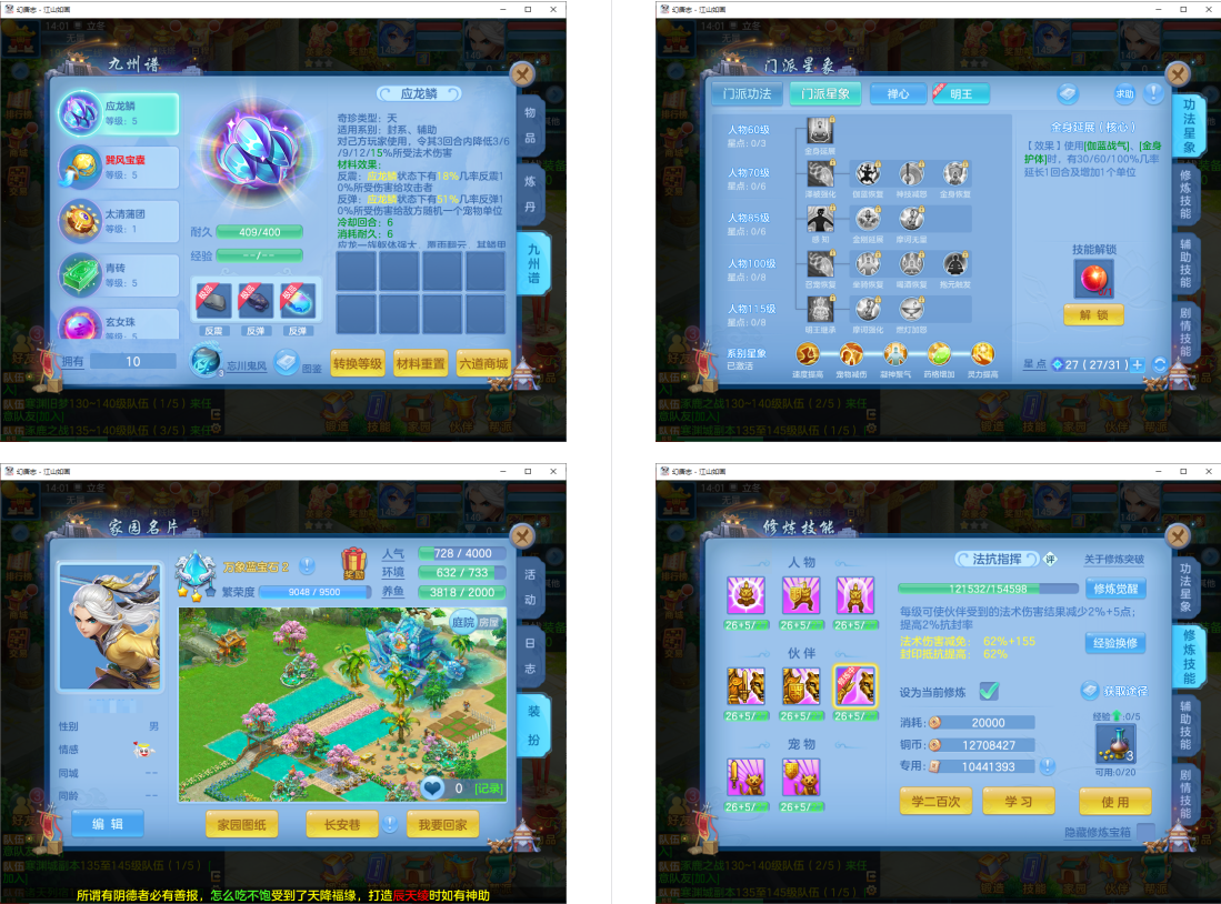 (140佛门/男)江山如画/一年换绑/有双重---5件12段1件10段1件8段,特技装,内丹神兽蛇+11个6多特殊5(4满魂兽+2准满),4专属血脉,高级坐骑+海景房,310万银子,3089成就
