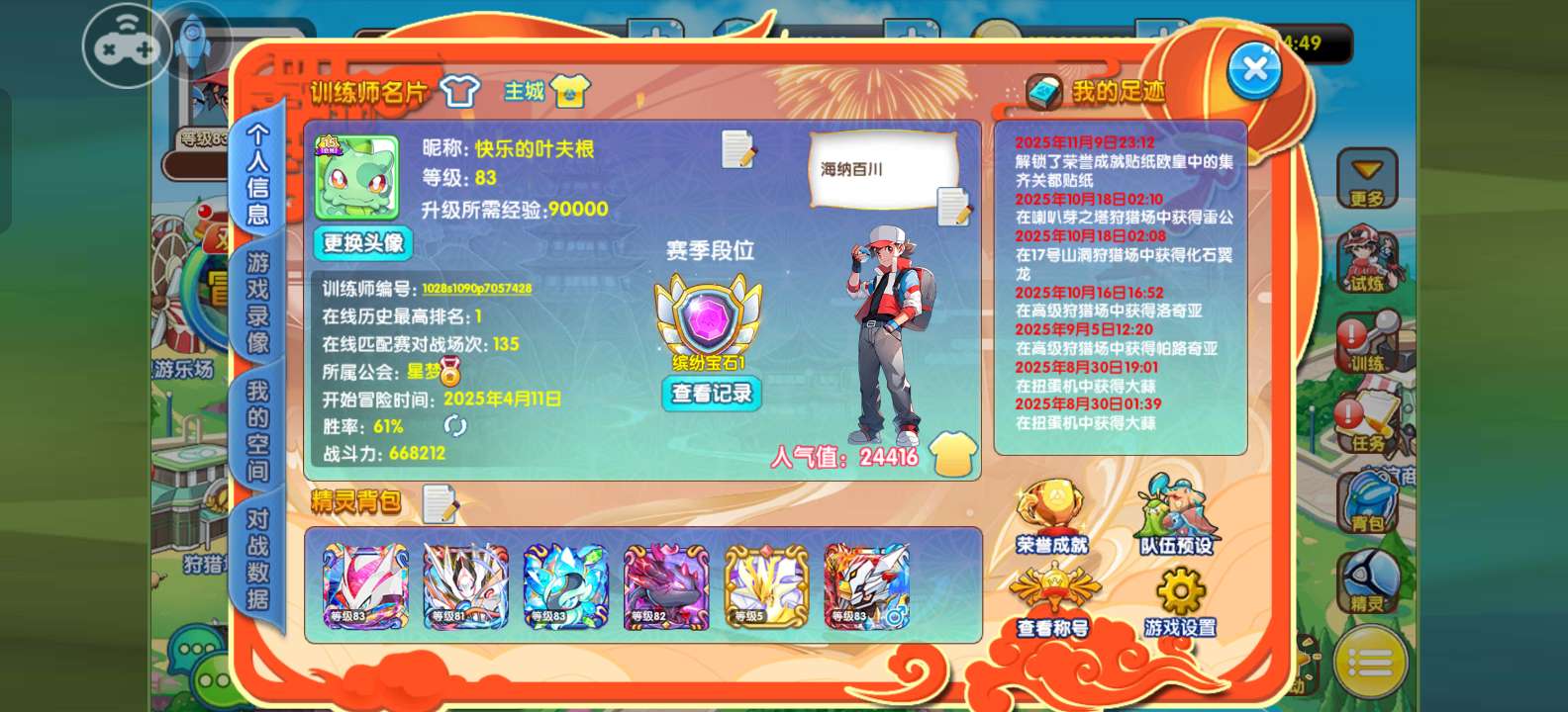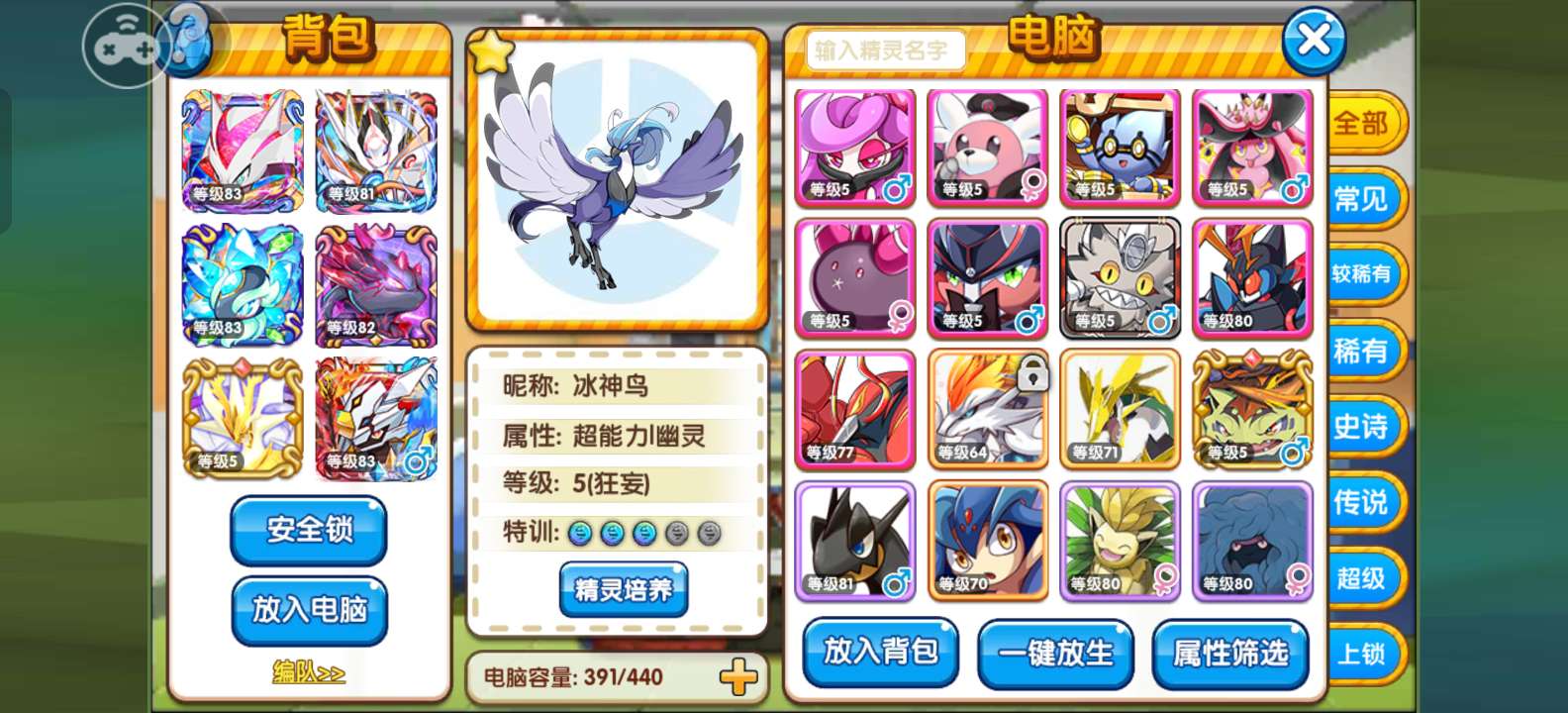 ios混服双端,官方55折安全换绑,公众号口袋部落下载(安卓苹果都能玩),新旅程90区,83级,1万钻,4红7橙3满契约,满配闪超梦,外星人,乌龟,新专黑梦,无专属骡子马,鬼骑古鹿水军闪熊振翼发等宠物,礼包一堆,看图