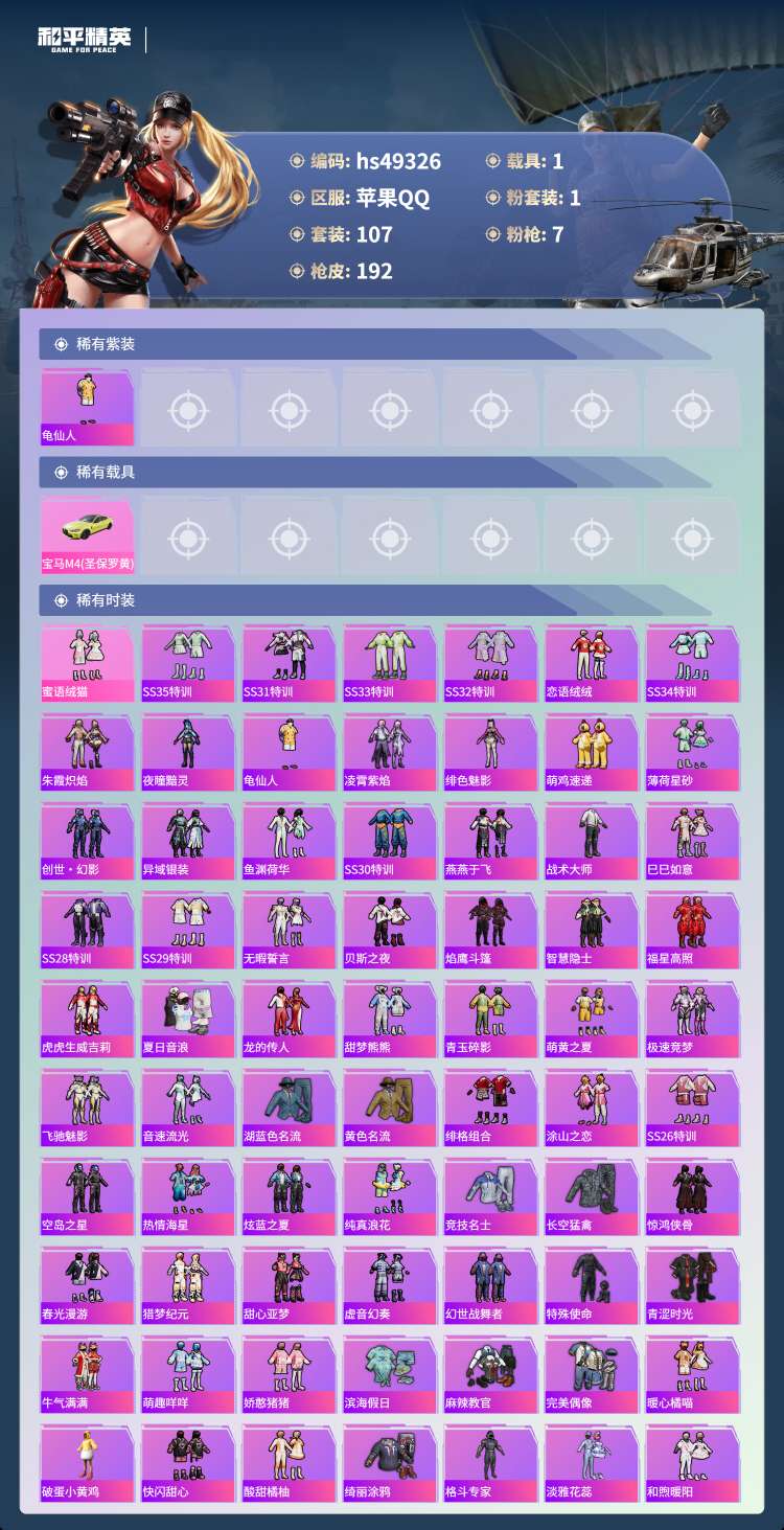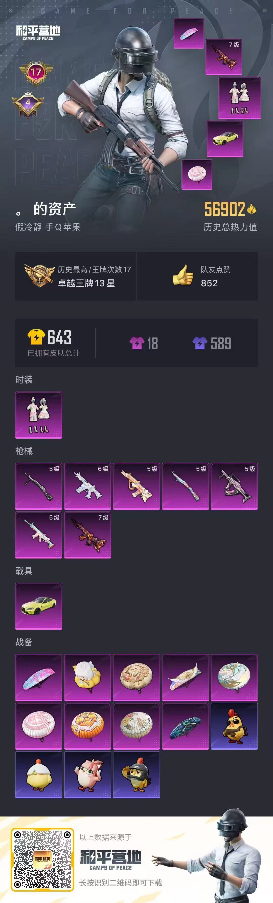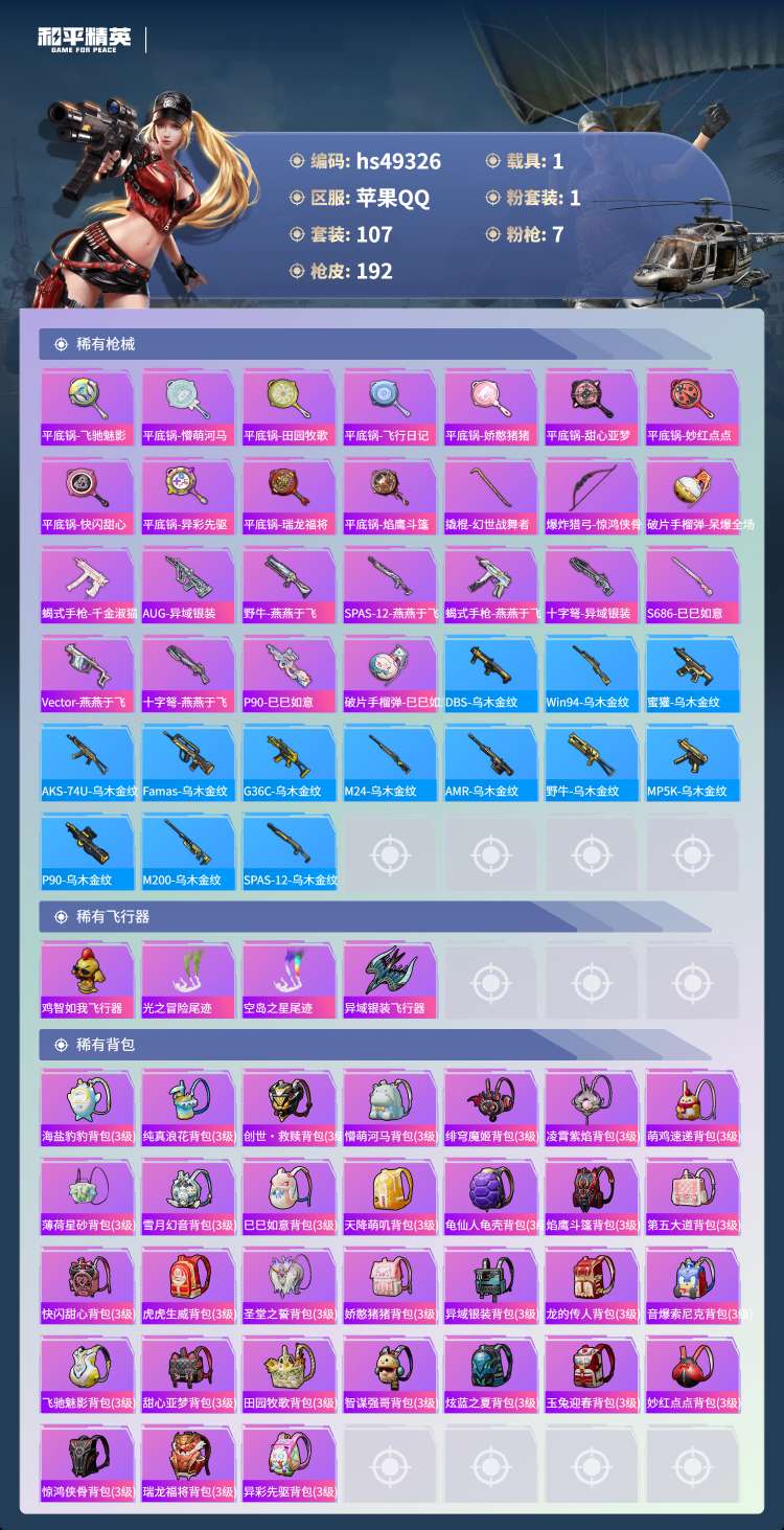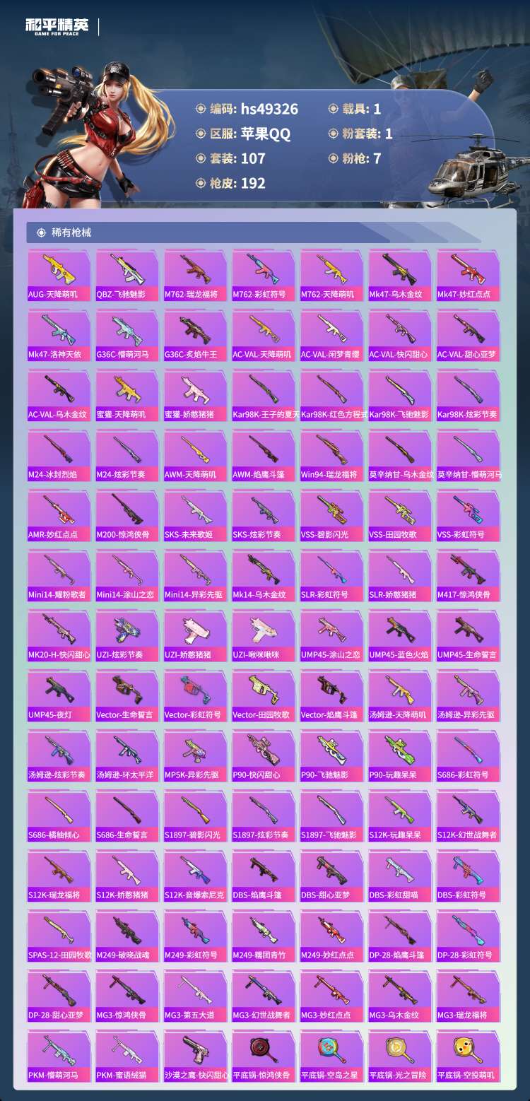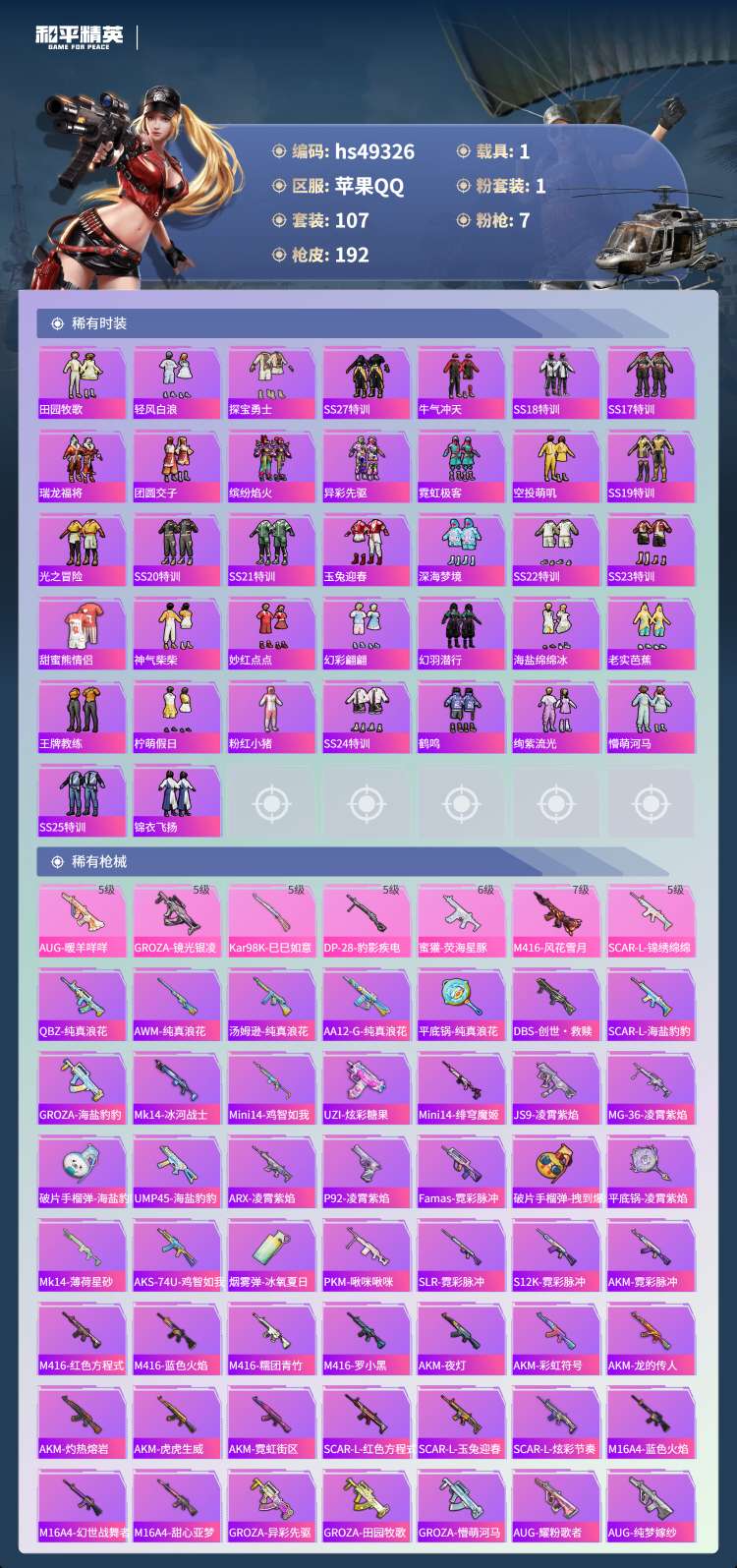 hs49326 苹果手Q-17王牌印记-1粉装-7特效枪-1载具-57002热力值-107套装-19