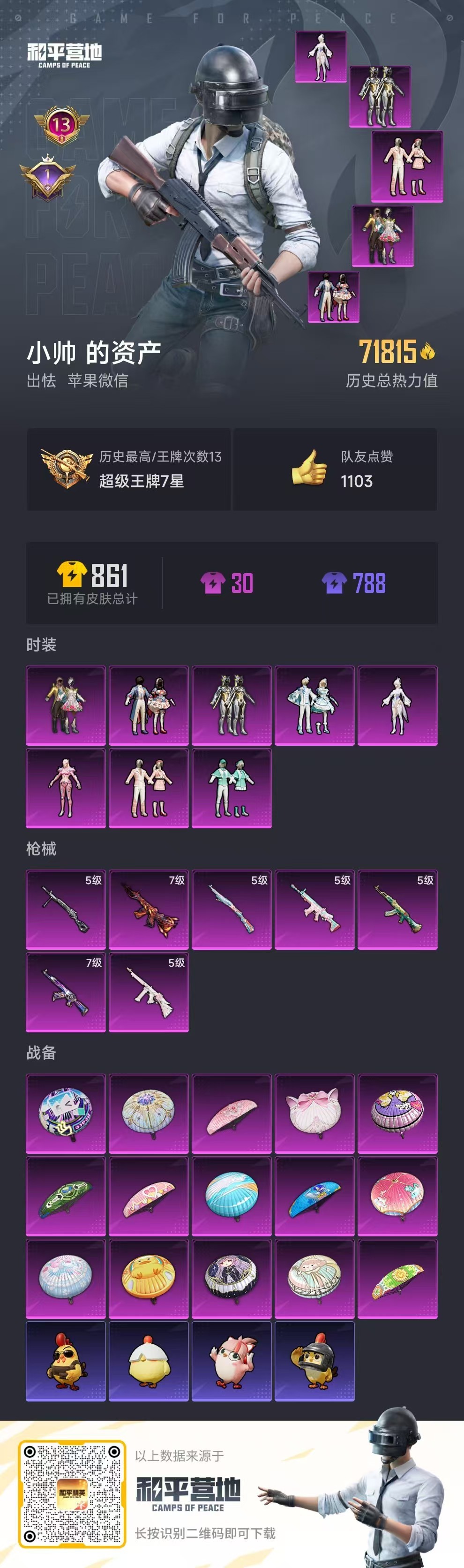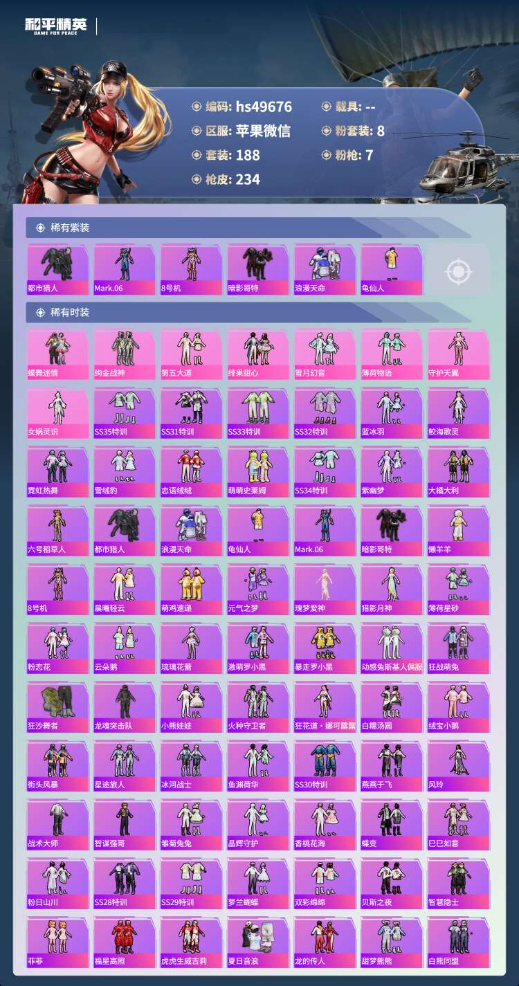 hs49676 苹果微-13王牌印记-8粉装-7特效枪-71815热力值-188套装-234枪皮-